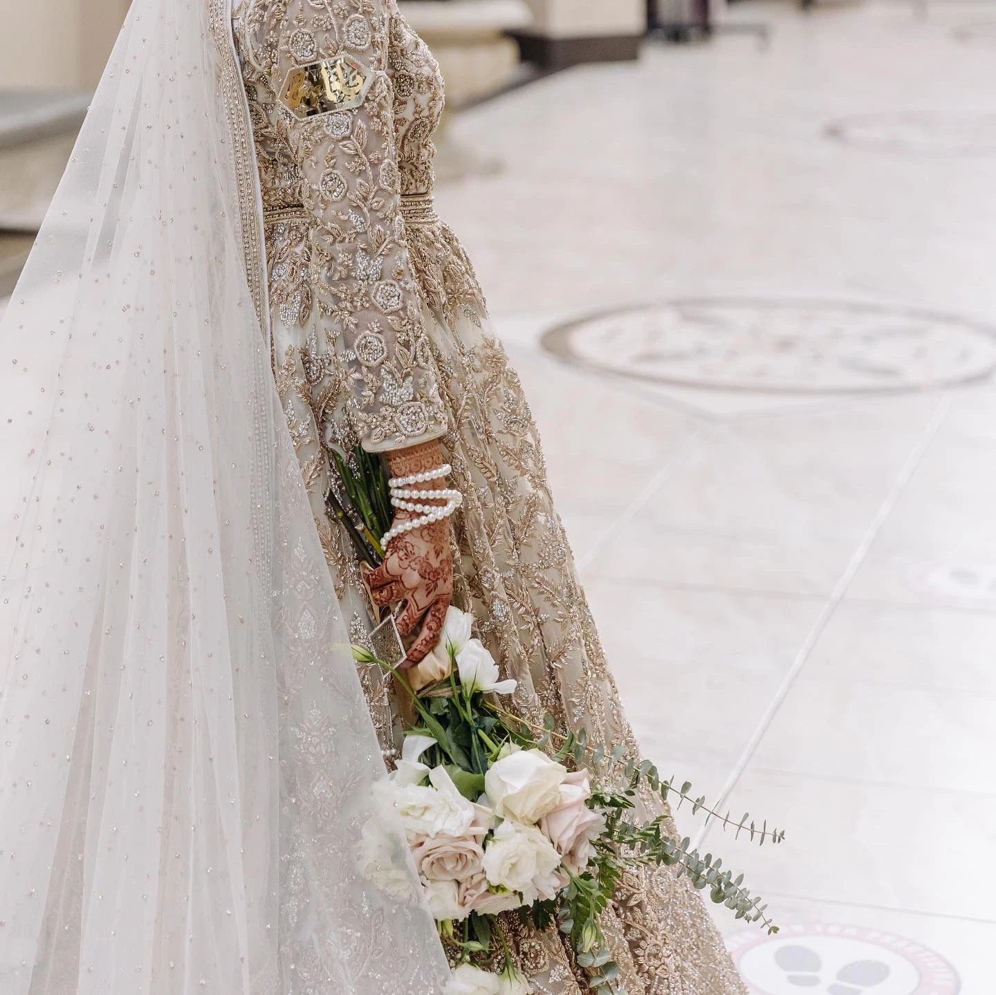 Custom Indian Couture Bridal Lengha with Long Veil - Kora Work