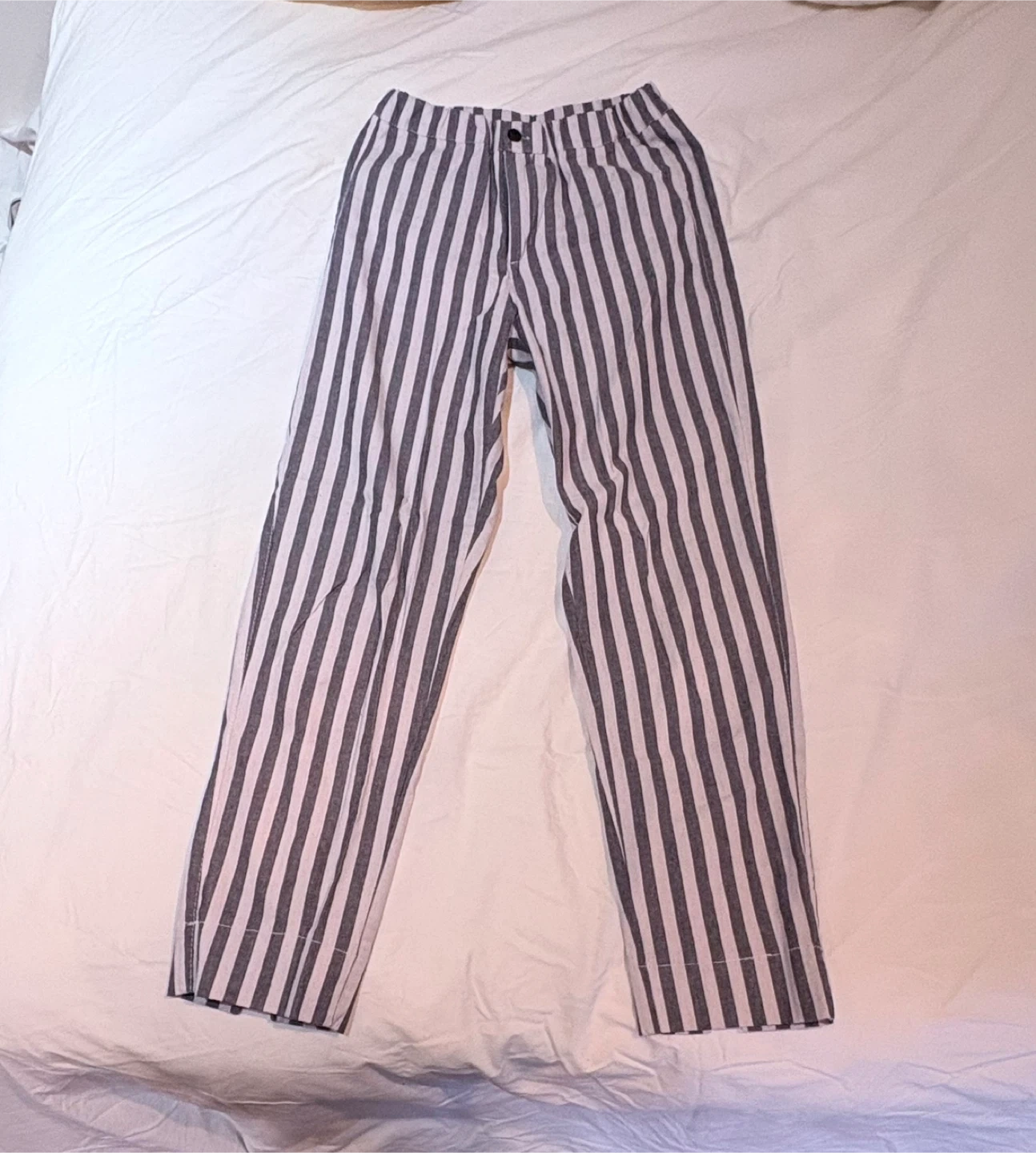 Brandy Melville pants featuring a classic blue and white stripe pattern. These pants have a comfortable elastic waistband and made from a lightweight fabric.