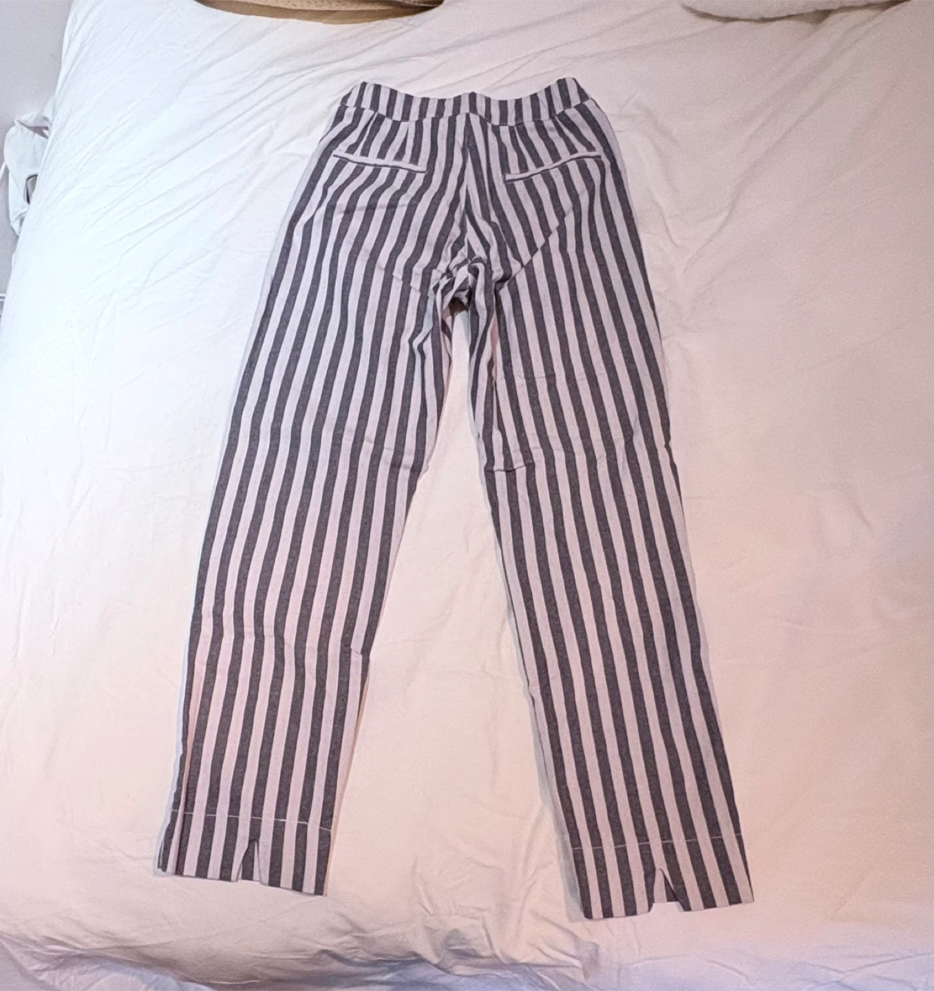 Brandy Melville pants featuring a classic blue and white stripe pattern. These pants have a comfortable elastic waistband and made from a lightweight fabric.