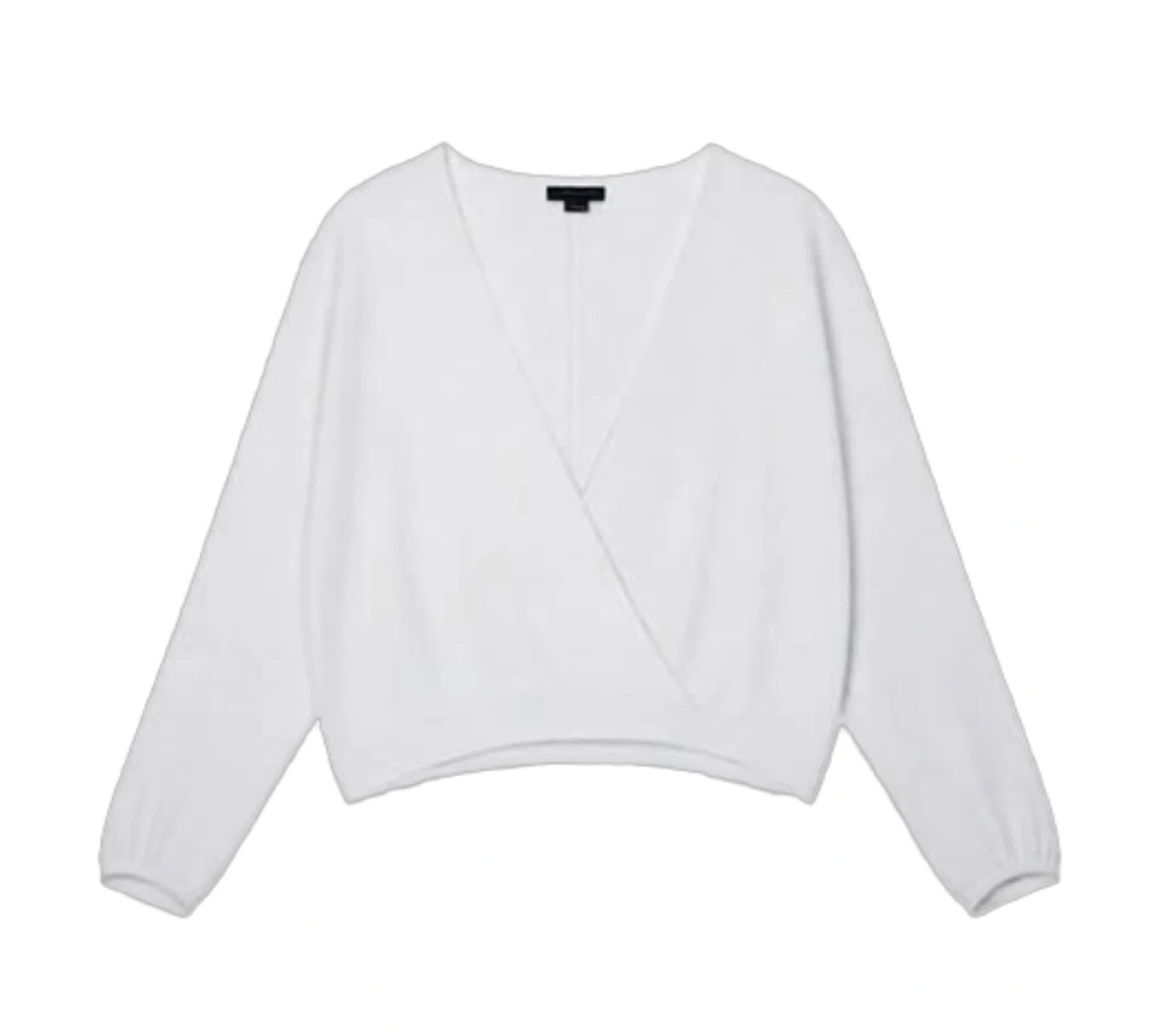 Lightweight cream V-neck sweater from Dynamite featuring a subtle wrap-style front. Relaxed yet flattering fit with cuffed sleeves and a slightly cropped hem. Easy to dress up or down for a clean, minimalist look.