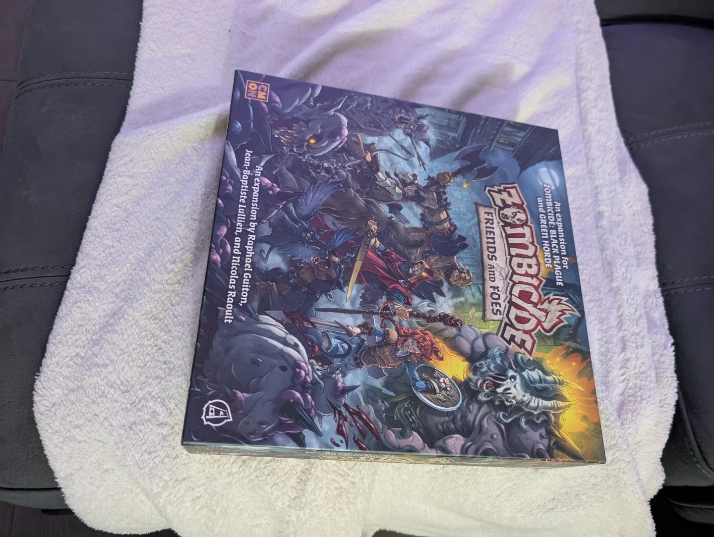 This is the Zombicide Friends and Foes expansion for the popular board game. It includes miniatures, cards, and game board tiles. This expansion adds new survivors and enemies to the game