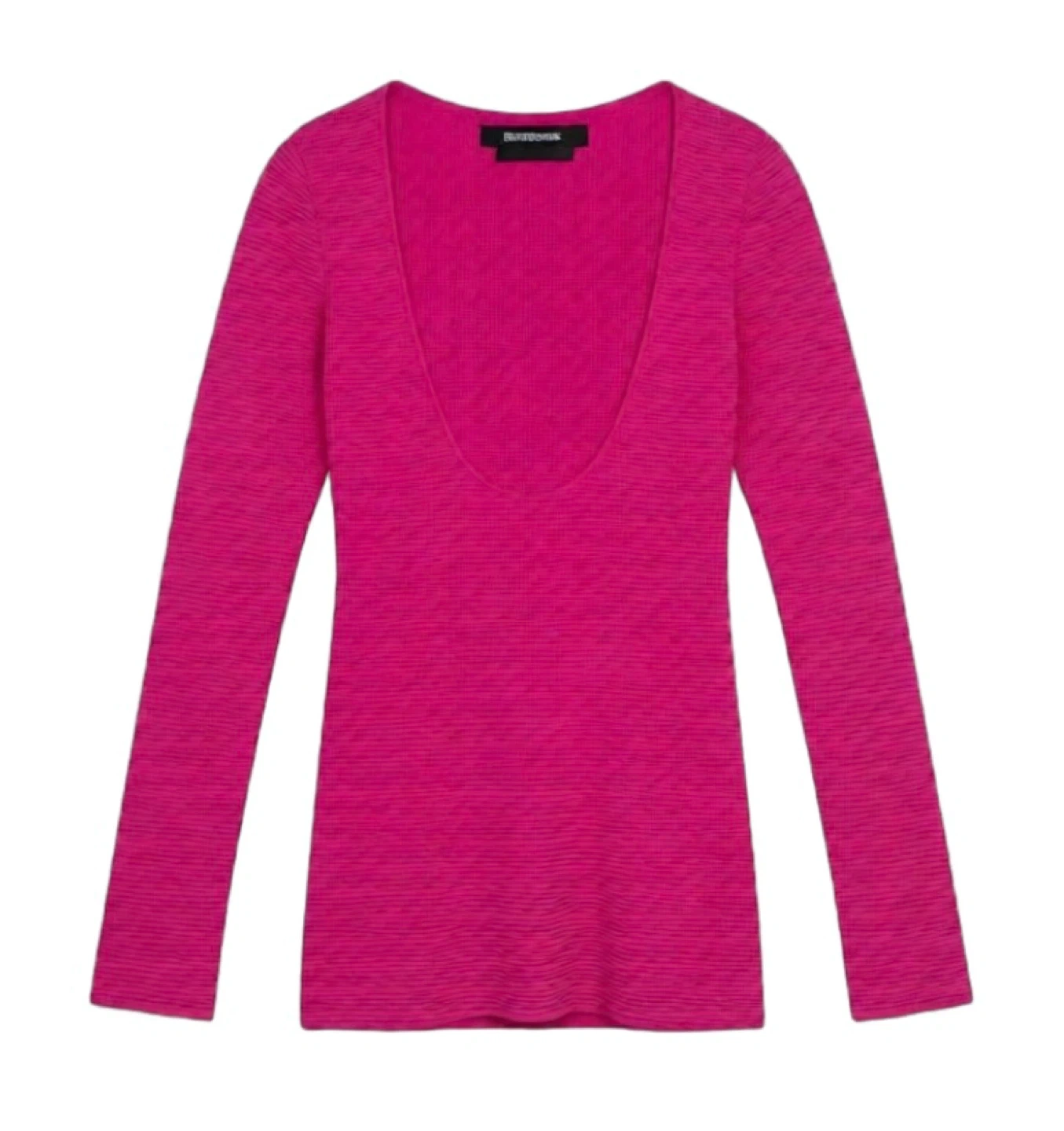 Bright hot pink knitted bikini cover-up perfect for the beach, pool, or vacation. Lightweight, stretchy, and breathable with a flattering fitted silhouette and scoop front detail. Great to throw over your swimsuit while still showing your bikini underneath.