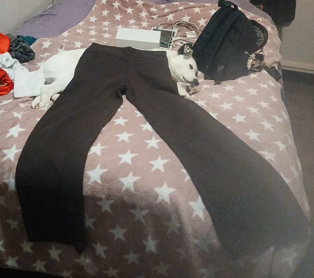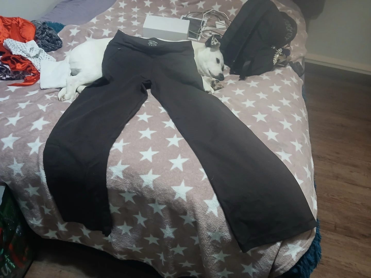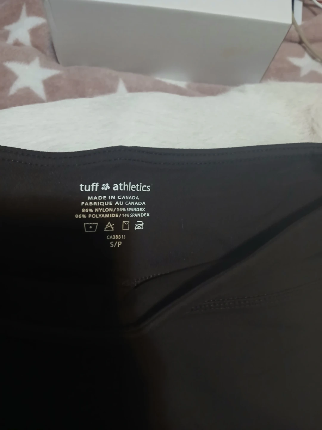 These brown yoga pants are made in Canada from a blend of 86% nylon and 14% spandex. They feature a small zippered pocket on the side. The size is S/P.🥕
