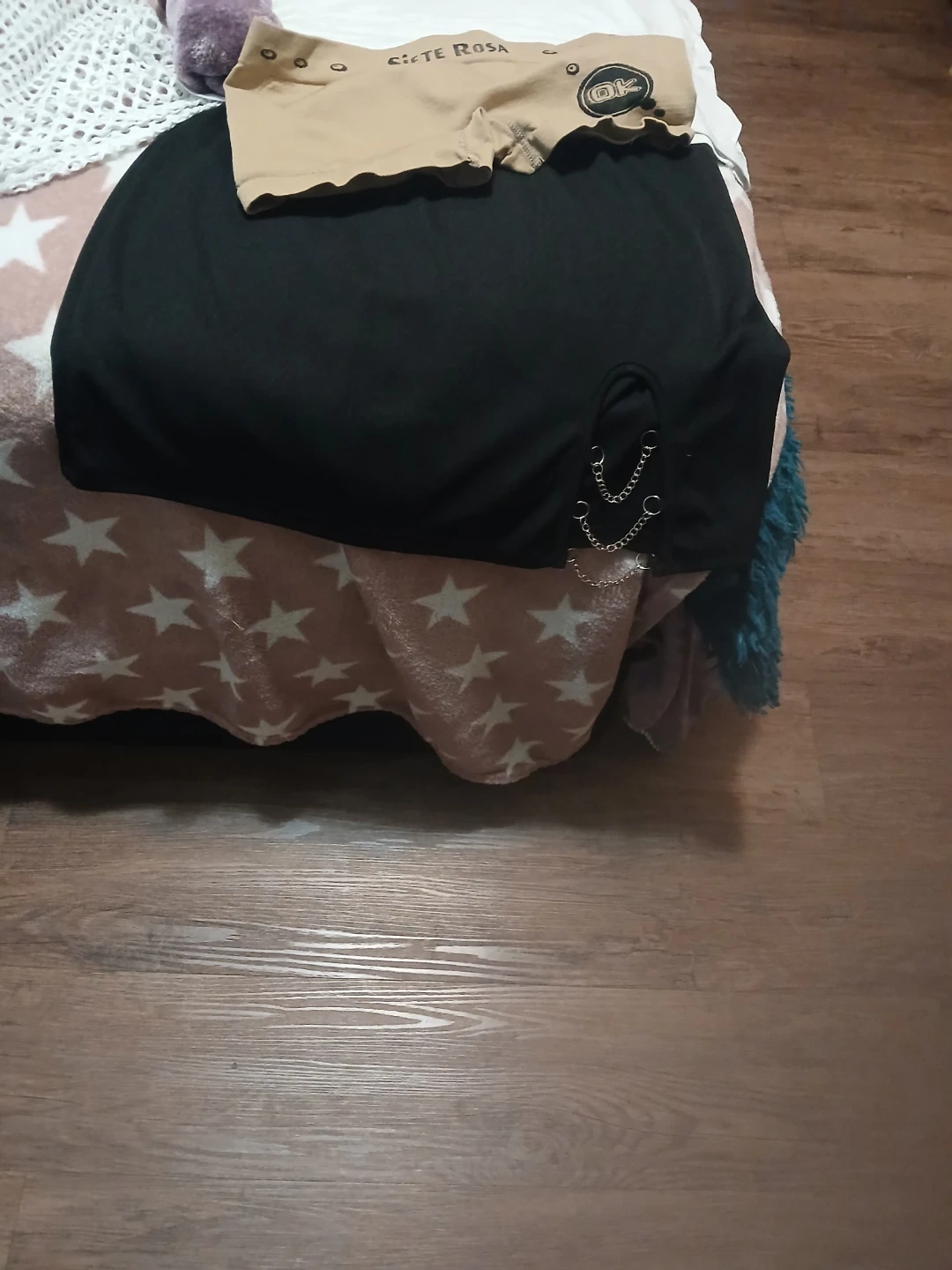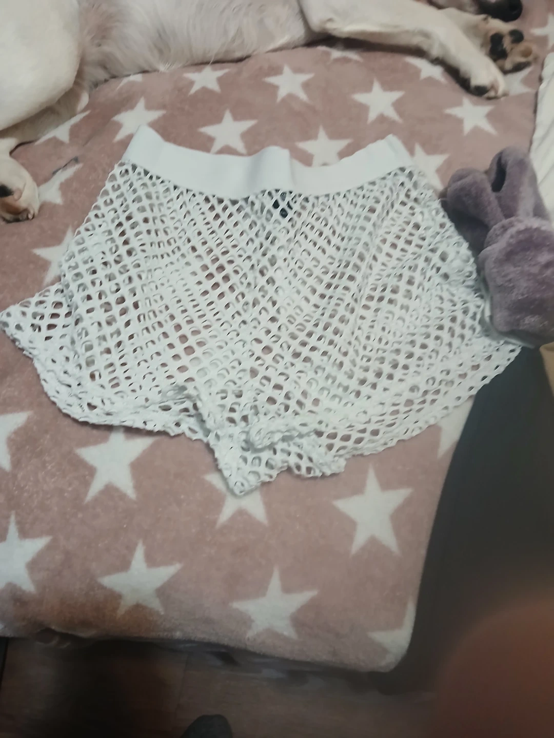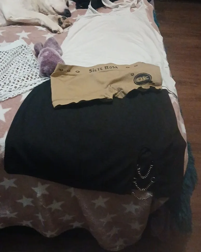 A Siete Rosa tank top and mesh shorts set. The tank top is white, and the shorts are white mesh. Includes matching tan Siete Rosa boy shorts. It's a comfy and stylish ensemble!🥕