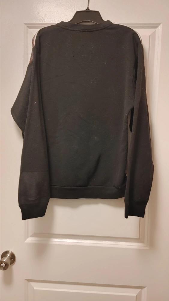 Long-sleeved black crewneck sweatshirt featuring a collage of Dwight Schrute images from The Office. Soft and comfortable material.
