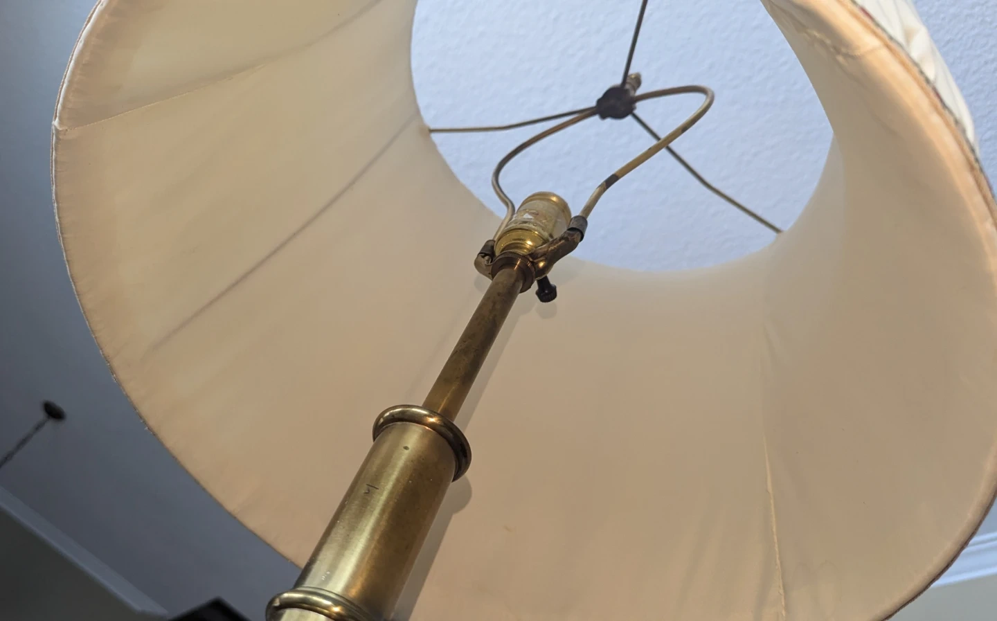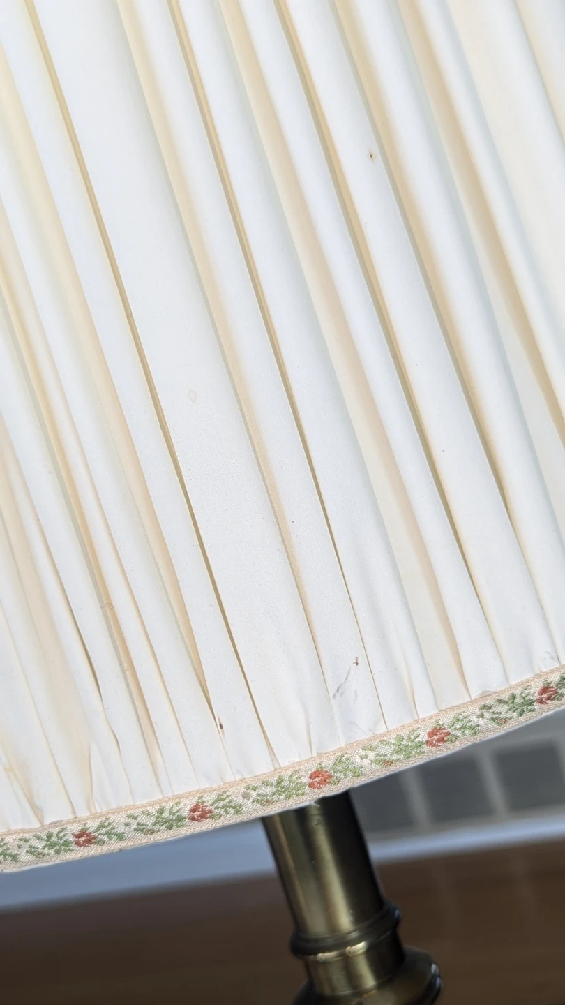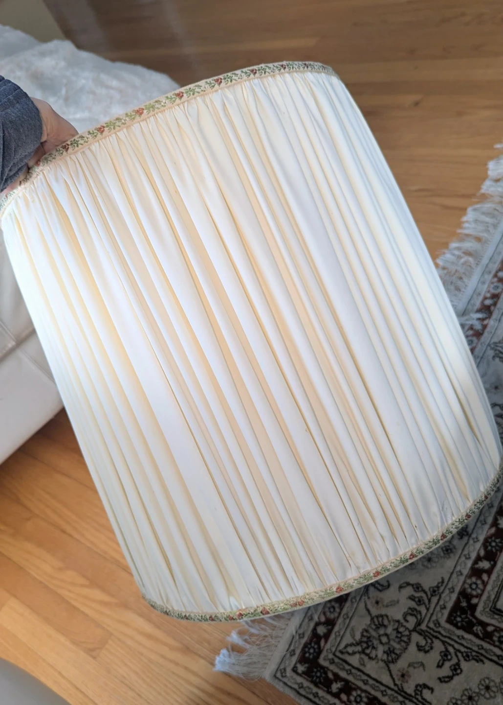 The shade is not in perfect condition; it has some minor marks that I think will improve if you know how to carefully clean this material. It's not major stains nor too distracting otherwise, though. It's fair condition as is.