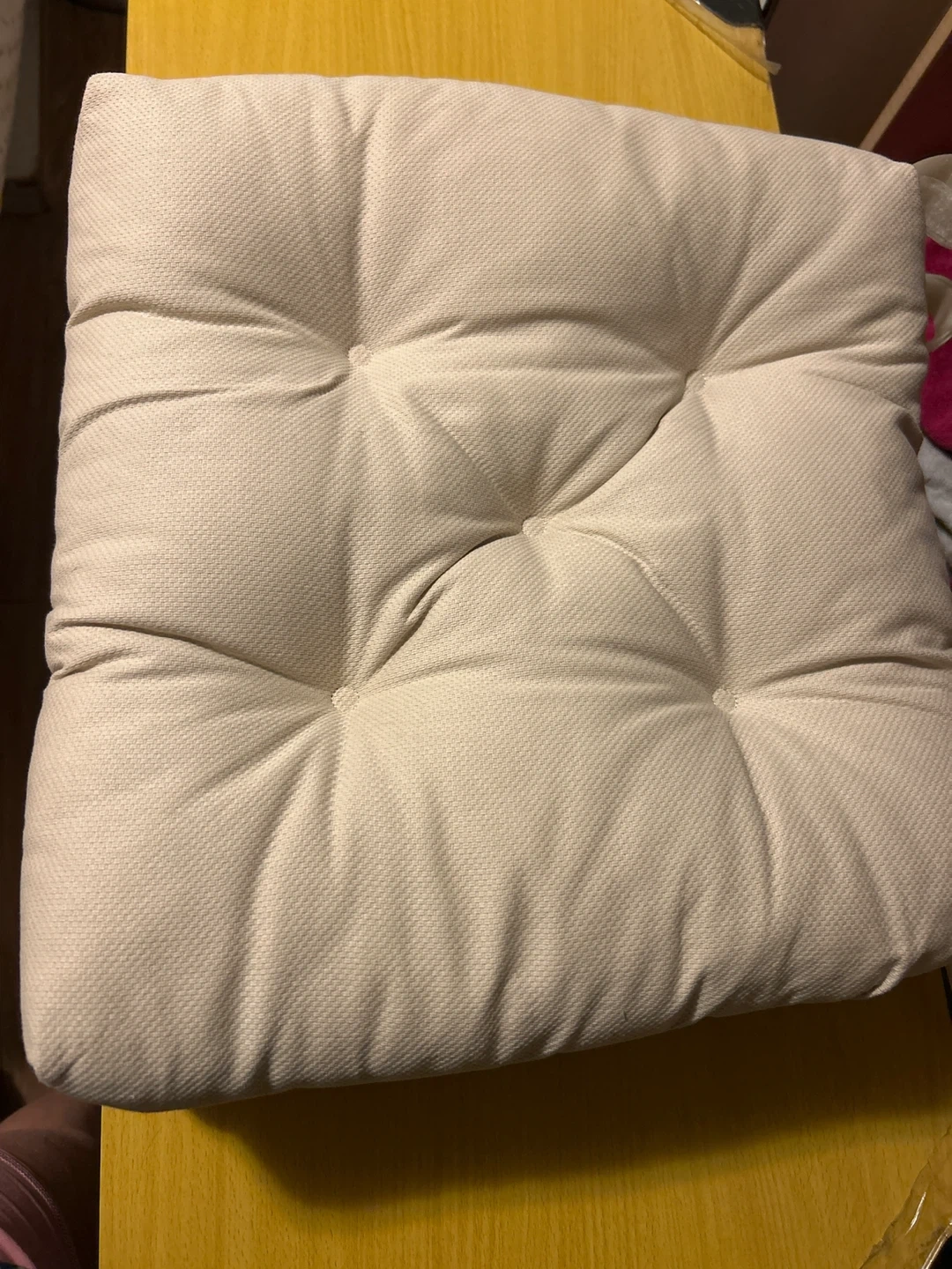 This is set of two (2) tufted square seat cushion. It's made of a durable fabric with a textured weave. Features tie straps for secure placement. Great for adding comfort to chairs!