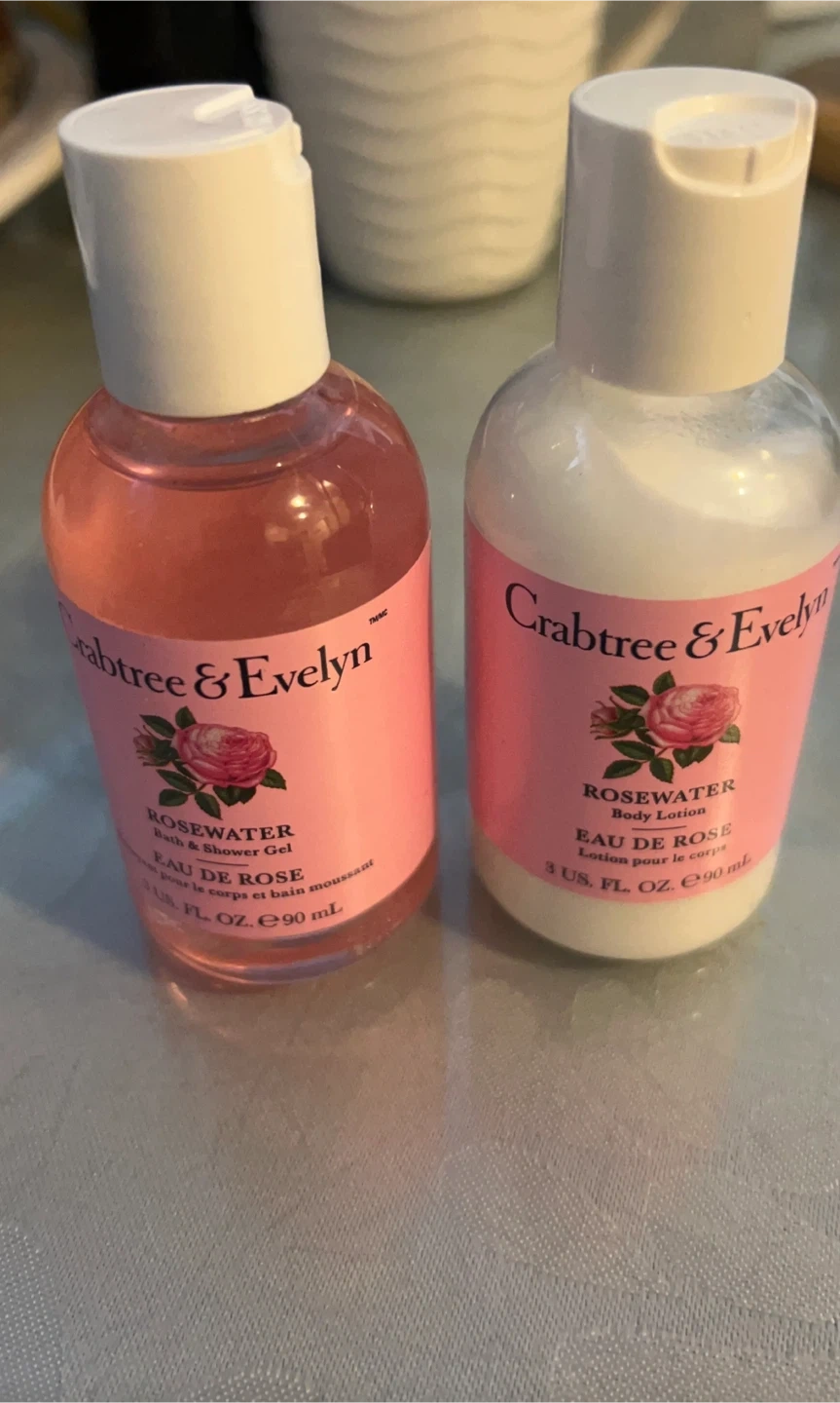 This set includes Crabtree & Evelyn Rosewater Bath & Shower Gel and Body Lotion. Both are 3 US fl oz (90 mL) each. Perfect for travel or trying out the rosewater scent!