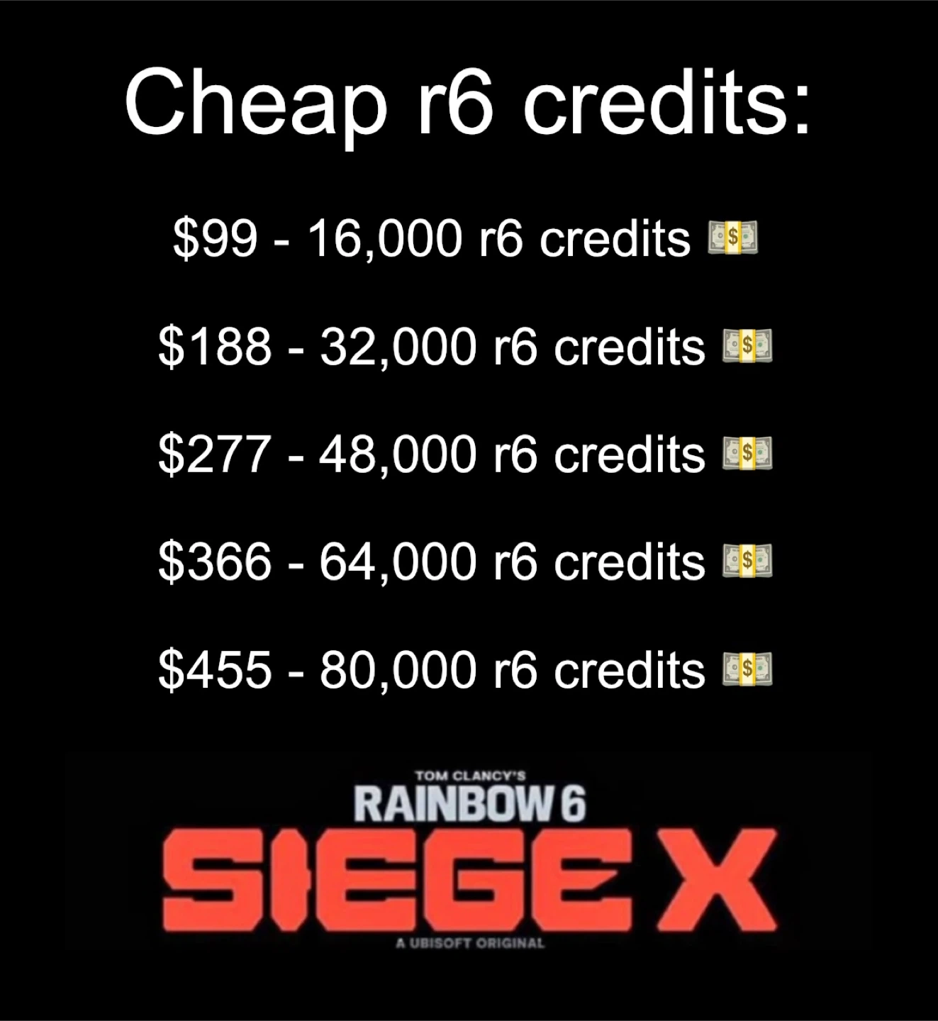 $99 - 16,000 r6 credits ๐ต