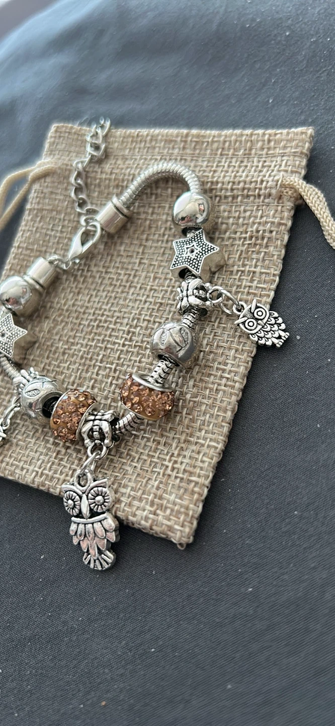 Owl Charm Bracelet with Sparkle Beads