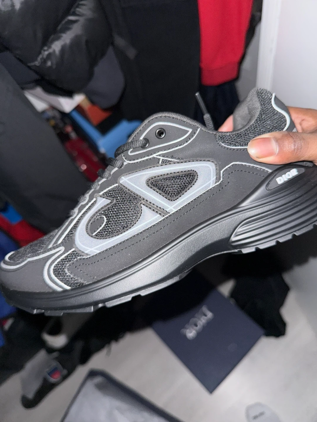 Dior B30 sneakers in black microfiber mesh. These shoes feature a contemporary design and are crafted with quality materials. They include the original box for storage. Perfect for everyday wear or adding a stylish touch to your outfit!