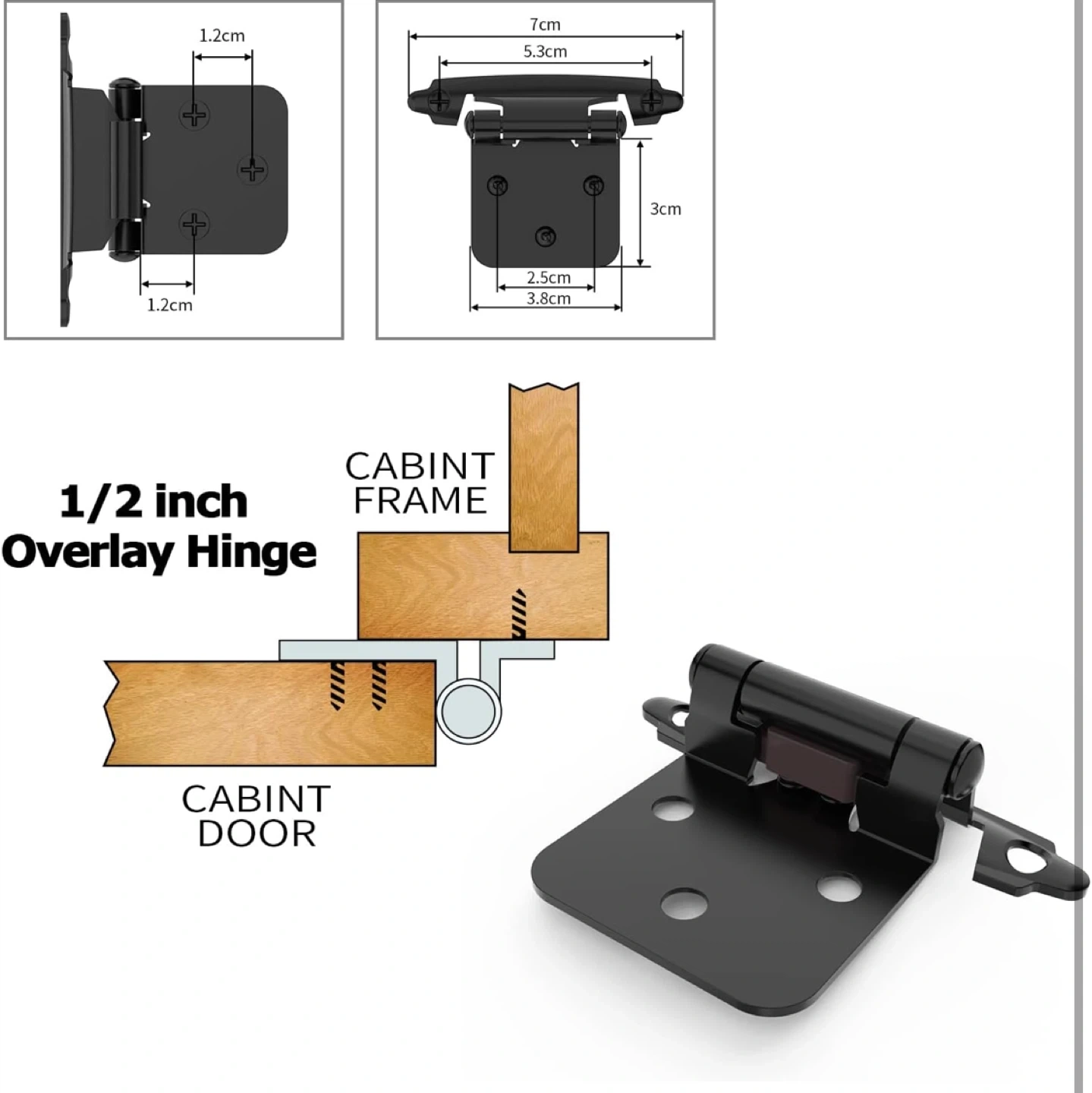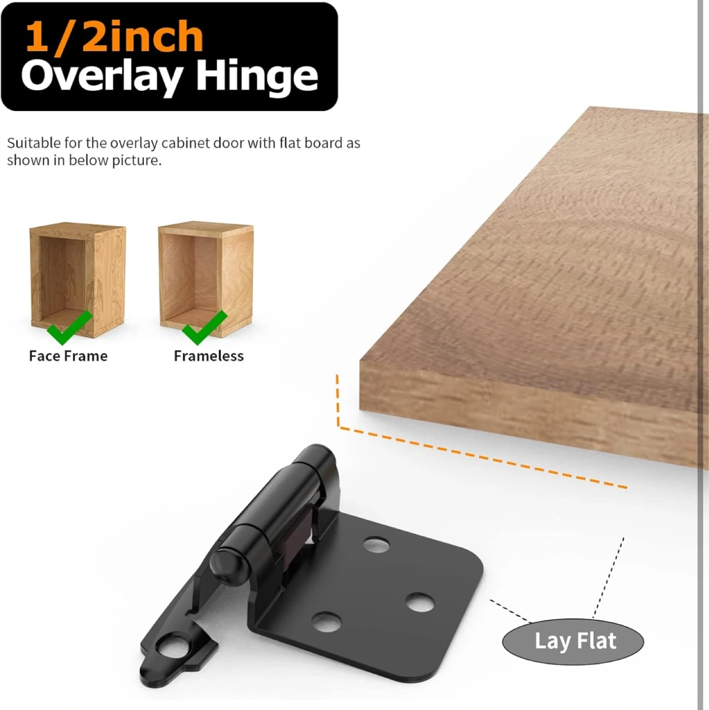1/2 Inch Overlay Cabinet Hinges (Set of 2)50 pack