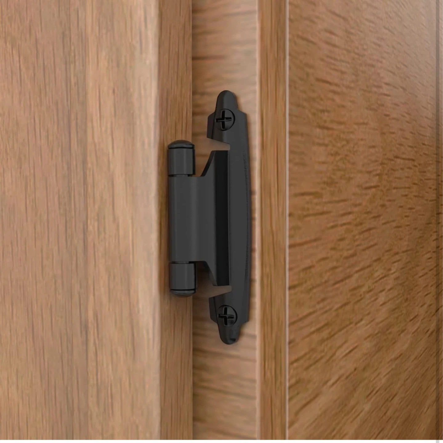 These black overlay cabinet hinges are suitable for overlay cabinet doors with flat boards. They lay flat and include screws for easy installation. Cabinet doors remain open at various angles, automatically closing when the opening angle is less than 30 degrees.