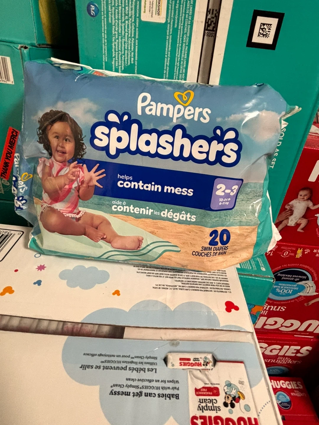 3 Pampers Splashers swim diapers help contain messes. These are size 2-3 They're designed for water play and offer protection in the pool.