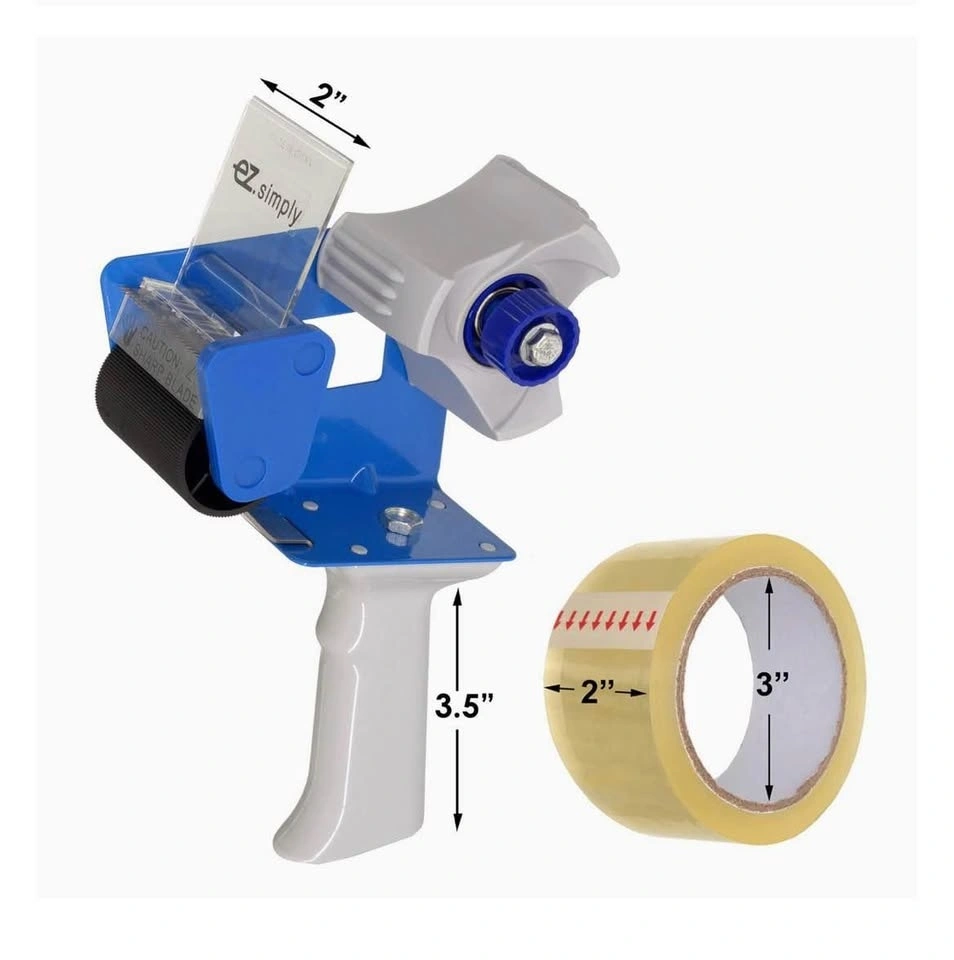 Package Includes: 1 x Packing Tape Gun. Fits 2-inch wide and 3-inch core tape for heavy duty packaging and shipping, industrial, or commercial use, or for light jobs at the office or home. Easy and safe loading, and smooth unrolling design. Lightweight with a comfortable handle to prevent hand and arm fatigue. Sharp steel blade to easily cut the tape every single time. Specifications: Product Type: Tape Dispenser. Fit: For tape up to 2" wide, 3" core. Capacity: 1 Tape. Color: Grey and Blue.