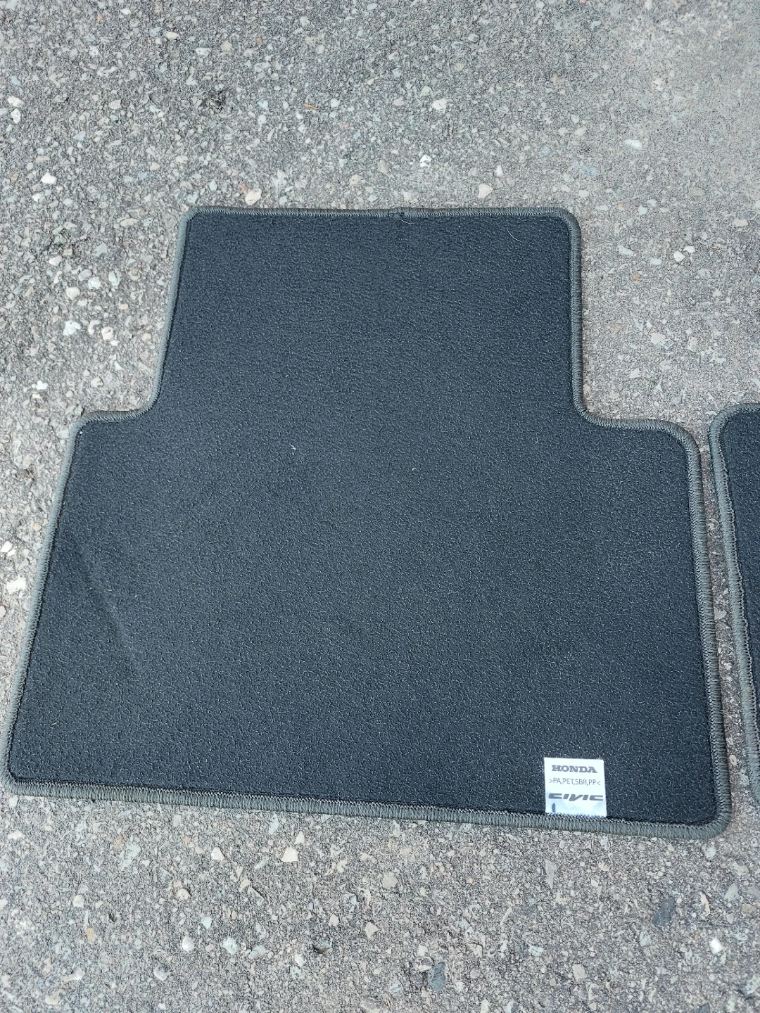 Set of dark grey rear floor mats for a Honda Civic. Made from PA, PET, SBR, and PP materials. Protects your car's interior.