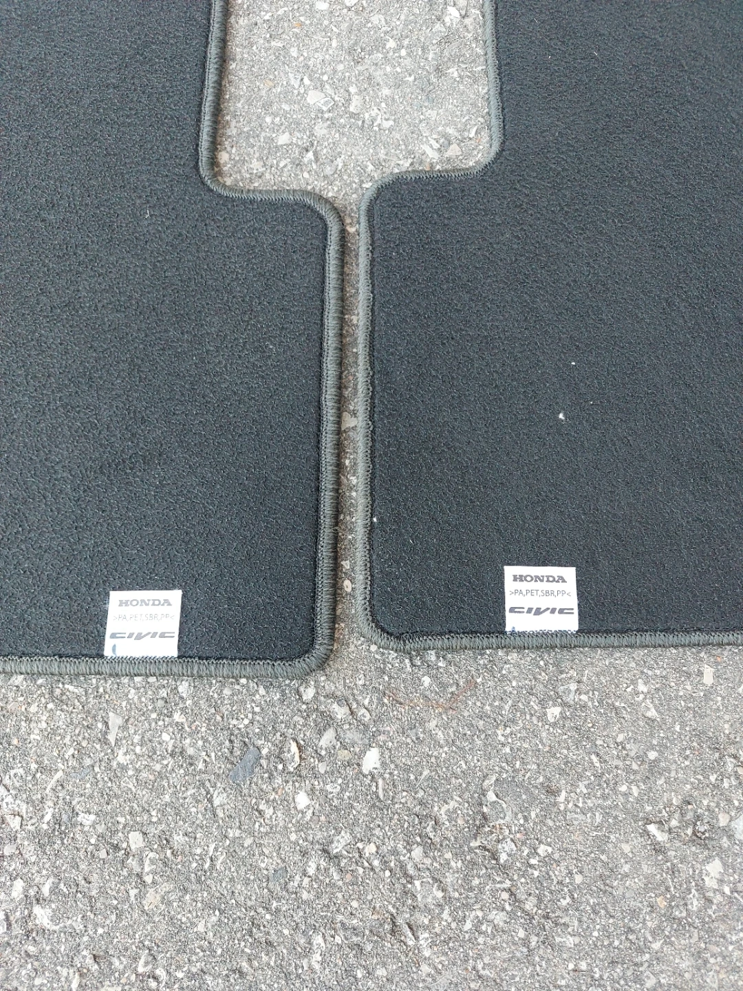 Set of dark grey rear floor mats for a Honda Civic. Made from PA, PET, SBR, and PP materials. Protects your car's interior.