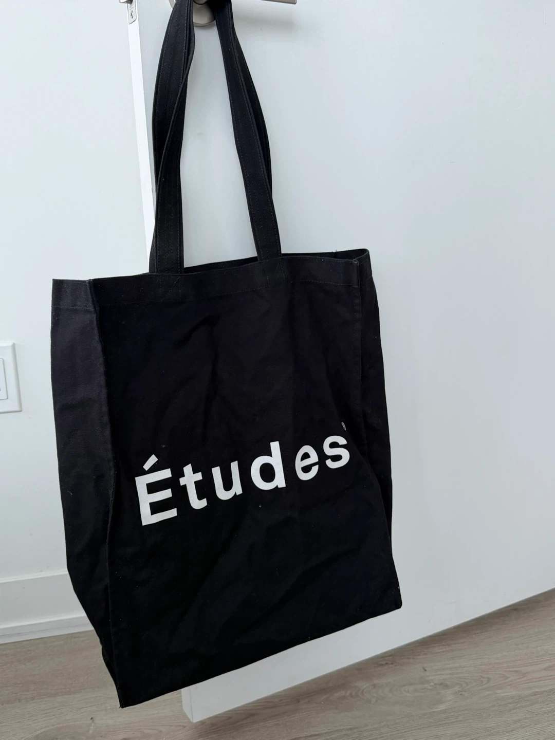 This is a black tote bag from Études. It's made of canvas. This bag is perfect for carrying groceries or everyday essentials :)