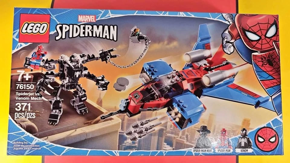 Battle Venom with LEGO Marvel 76150 Spiderjet vs. Venom Mech! Take to the skies and defend the city with this exciting set. It pits Spider-Man against Venom in a battle perfect for Marvel fans and LEGO collectors. Set Highlights: Iconic Minifigures: Includes Spider-Man, Venom, and Spider-Man Noir. Venom’s Mech Suit: A towering mech suit with poseable arms and legs, sharp claws, and signature tendrils. Spiderjet: Take Spider-Man to the skies with his sleek Spiderjet, complete with dual flick missiles and a minifigure cockpit. Perfect for Play and Display: Provides hours of imaginative play and is also a great display piece. BNIB - Brand New in Box: This set is retired and hard to find in sealed, mint condition. A Must-Have for Spider-Man Fans: Don’t miss the chance to add LEGO Marvel 76150 Spiderjet vs. Venom Mech to your collection and bring the battle against Venom to life!