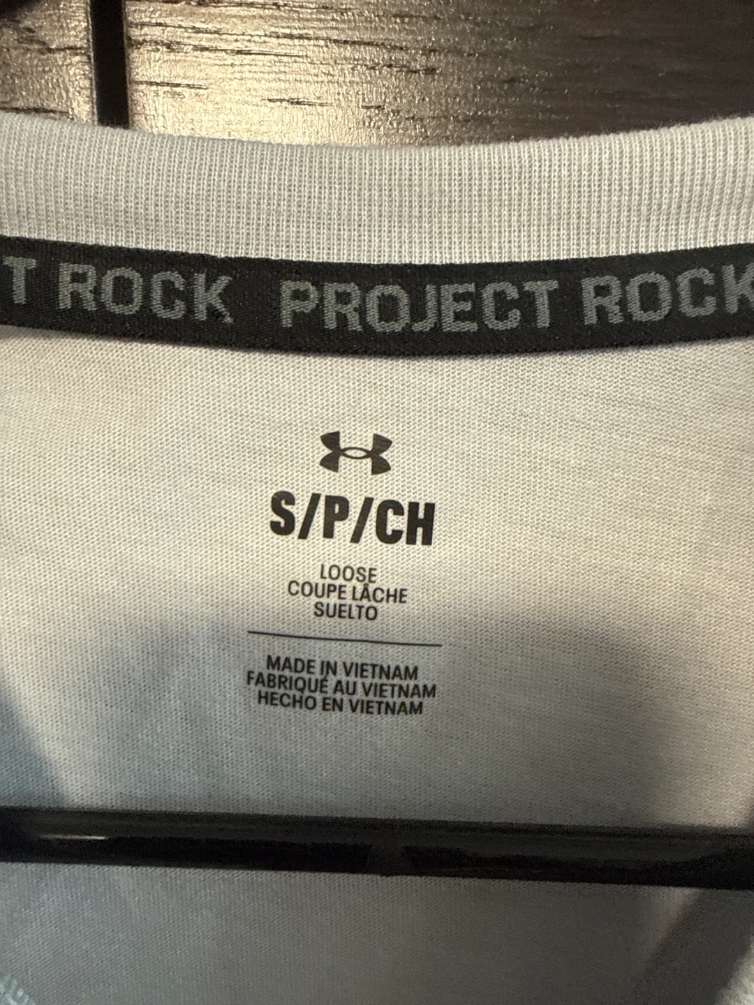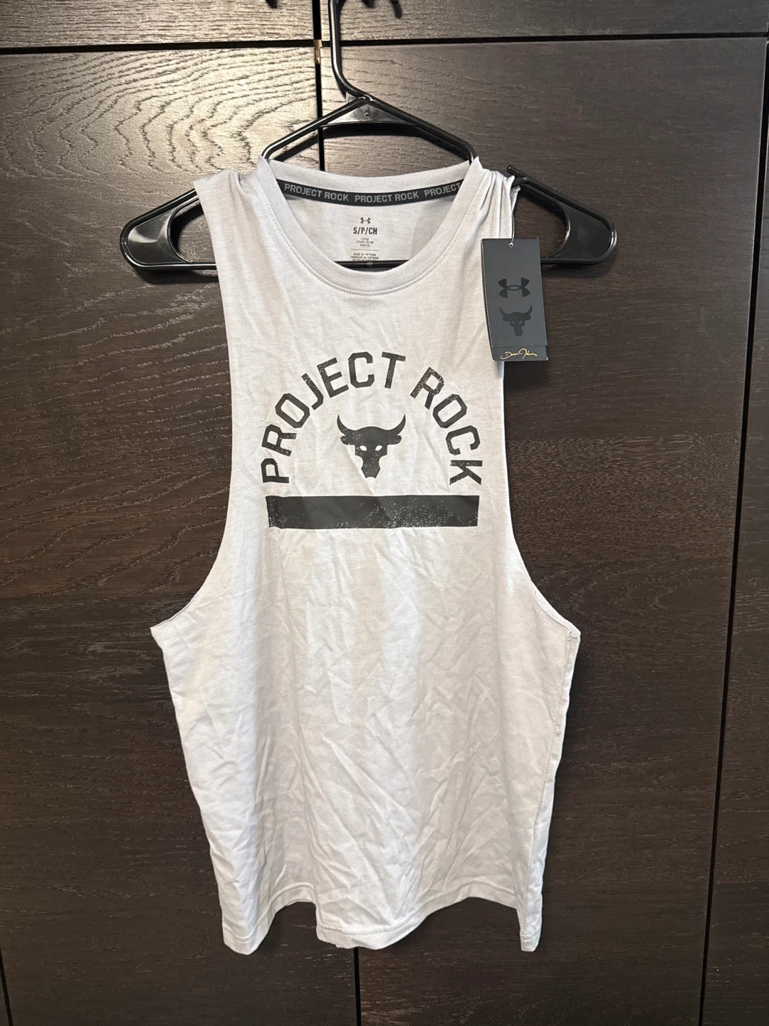 BRAND NEW! This is an Under Armour Project Rock tank top in size S/P CH. It's a light grey colour and has a loose fit. Made in Vietnam. This tank top is great for workouts or casual wear!