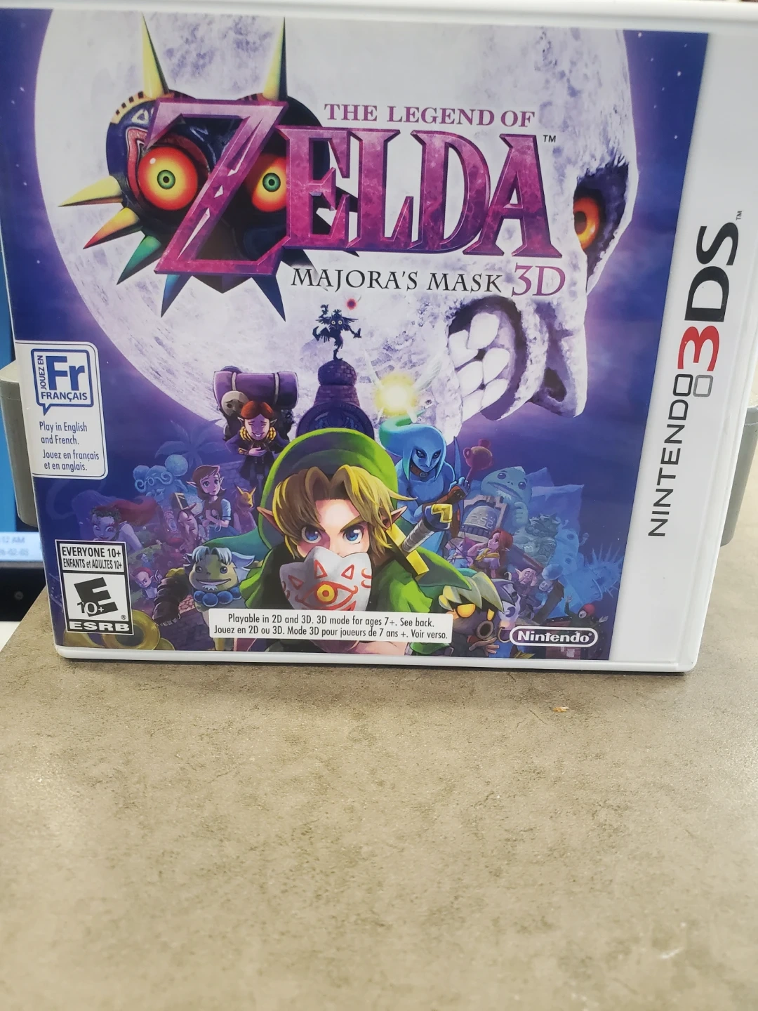 This is The Legend of Zelda: Majora's Mask 3D game for Nintendo 3DS. It's rated E10+ by the ESRB. The game includes the cartridge and original box.