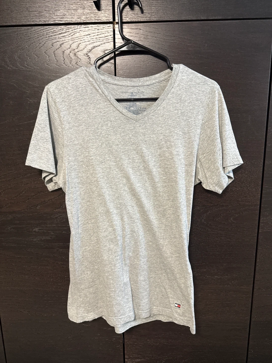 Tommy Hilfiger Grey V-Neck T-Shirt - Men's Medium