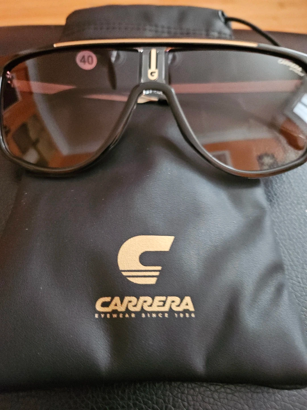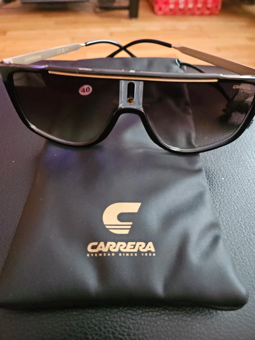 Carrera sunglasses with a black frame and gradient lenses. Includes a Carrera soft case. Size 40.