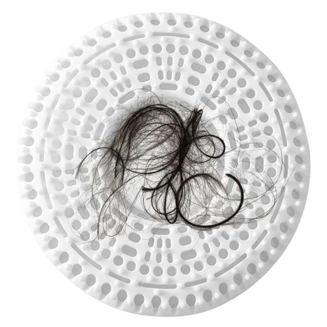 Hair Catcher Shower Drain Cover The shower drain cover with raised design can block and catch hair effectively while allowing water to drain through. Weighted and bottom arrow design replace the traditional suction cup, reducing moving around during shower. (Please notice that kicking the hair catcher while showering will make it move. The hair catcher can catch most hair but not all, some fine strands may go under with the water)