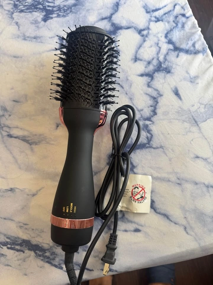 Features 3 heat settings (Low/Medium/High). This hot air brush and dryer in one adds volume and a smooth finish. It's lightweight with a comfortable grip. Standard plug, ready to use.
