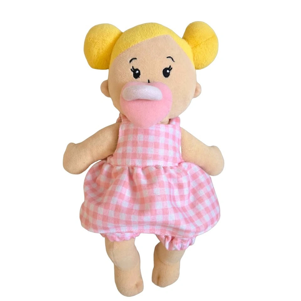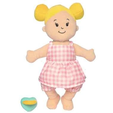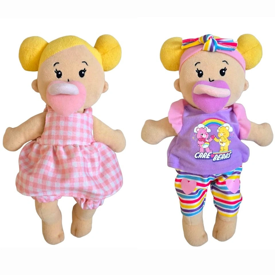 Adorable Manhattan Toy Wee Baby Stella soft doll in like-new condition. Includes an extra licensed Care Bears outfit and magnetic pacifiers for an amazing bundle value. Perfect first doll for babies and toddlers.