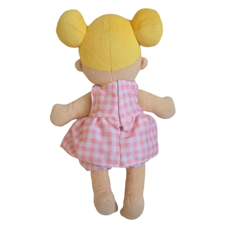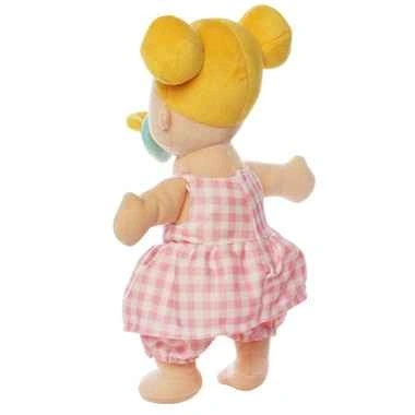 • Sweet blonde buns with original pink gingham outfit
