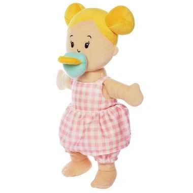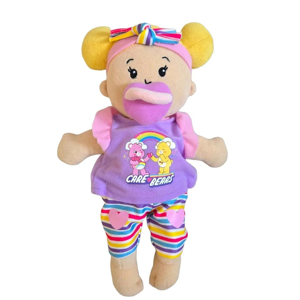 Adorable Manhattan Toy Wee Baby Stella soft doll in like-new condition. Includes an extra licensed Care Bears outfit and magnetic pacifiers for an amazing bundle value. Perfect first doll for babies and toddlers.
