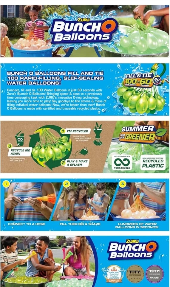 ZURU Bunch O Balloons 100 Fill & Tie Water Balloons & Launcher
