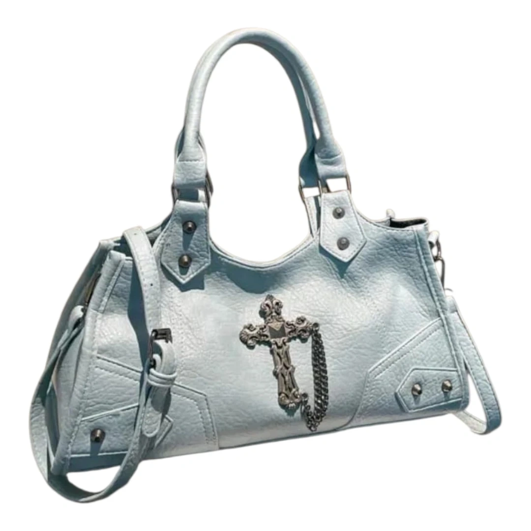 Light Blue Satchel Handbag with Cross Charm