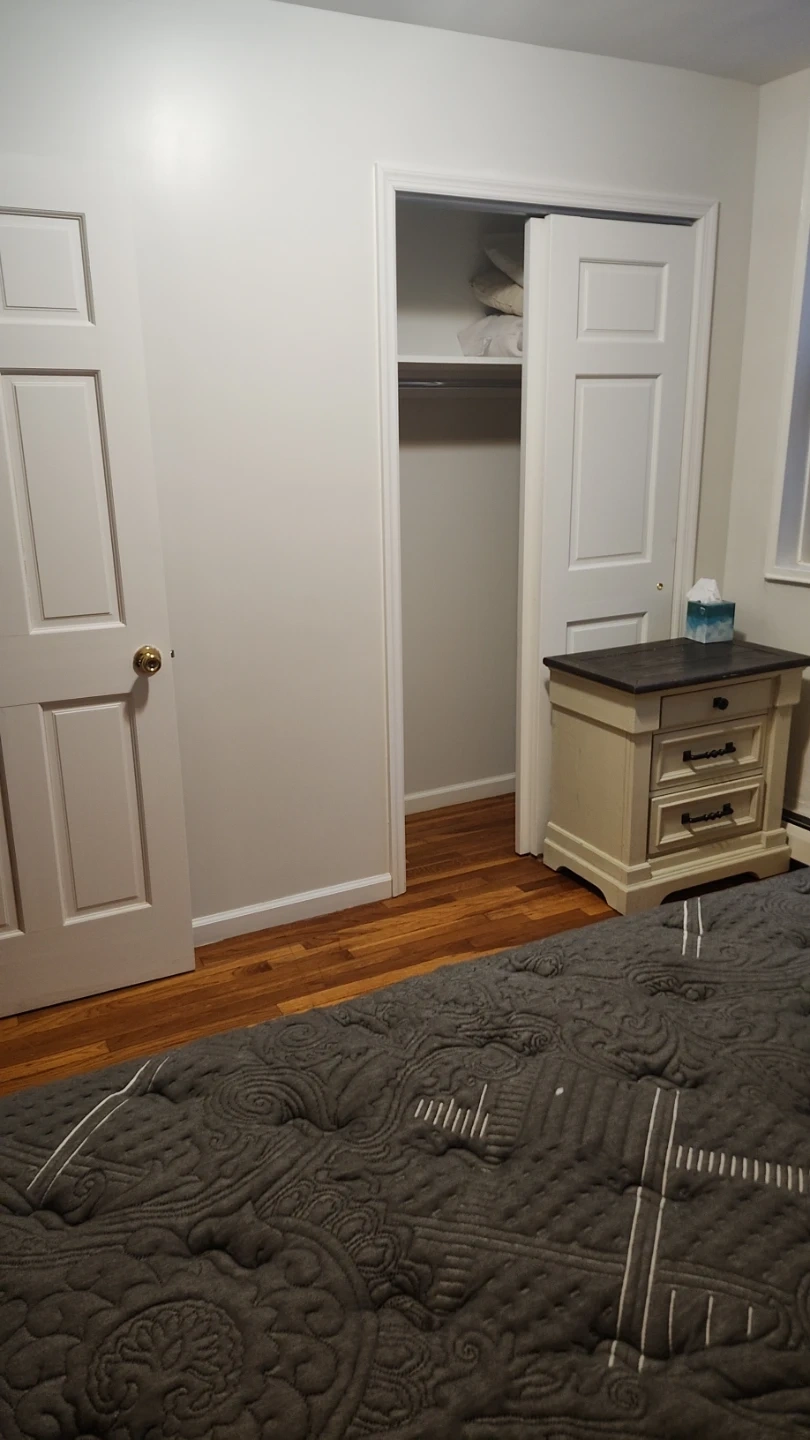 Bedroom with hardwood floors and closet