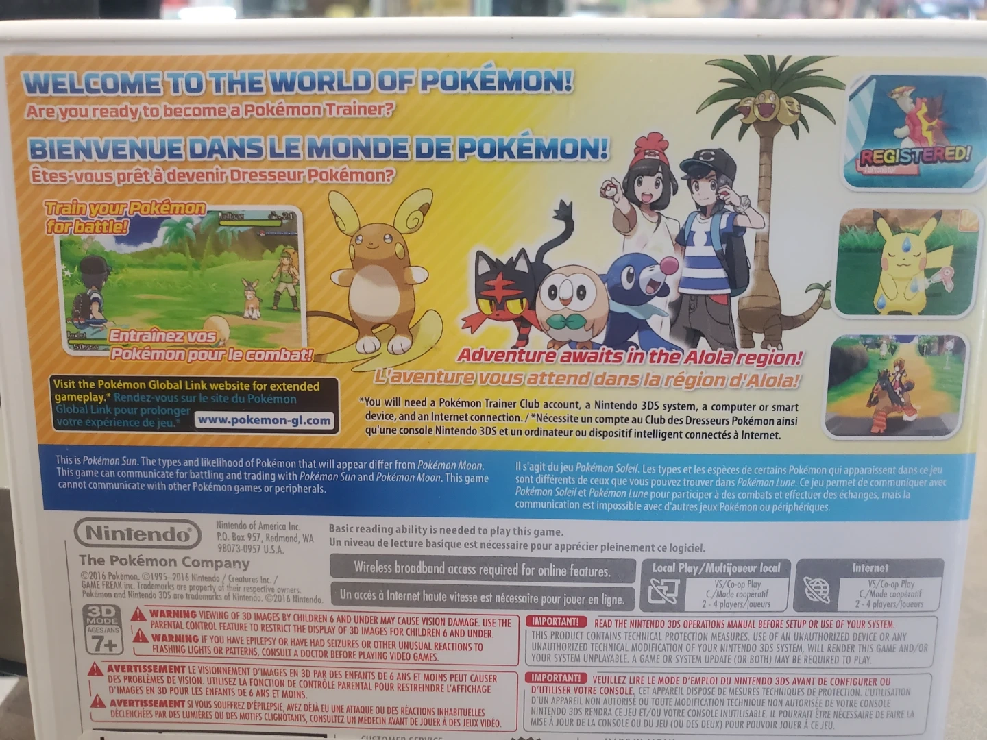 This is the Pokemon Sun game for the Nintendo 3DS. It allows for 2D and 3D play. Wireless internet access is required for online play. Playable in multiplayer mode.