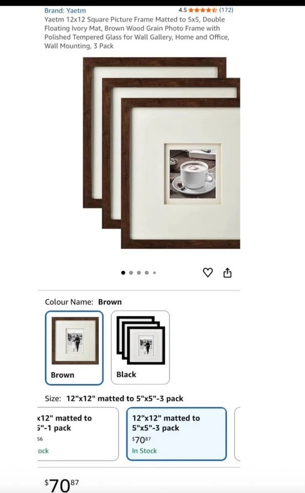 12x12 Wooden Glass Picture Frame for 5x5 Photo