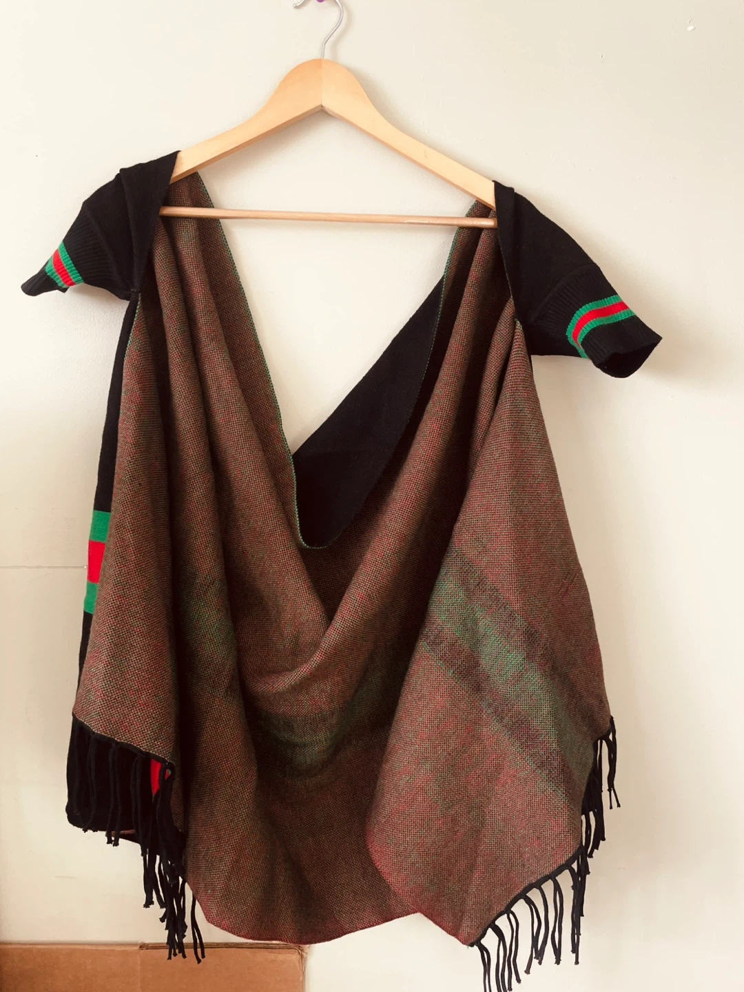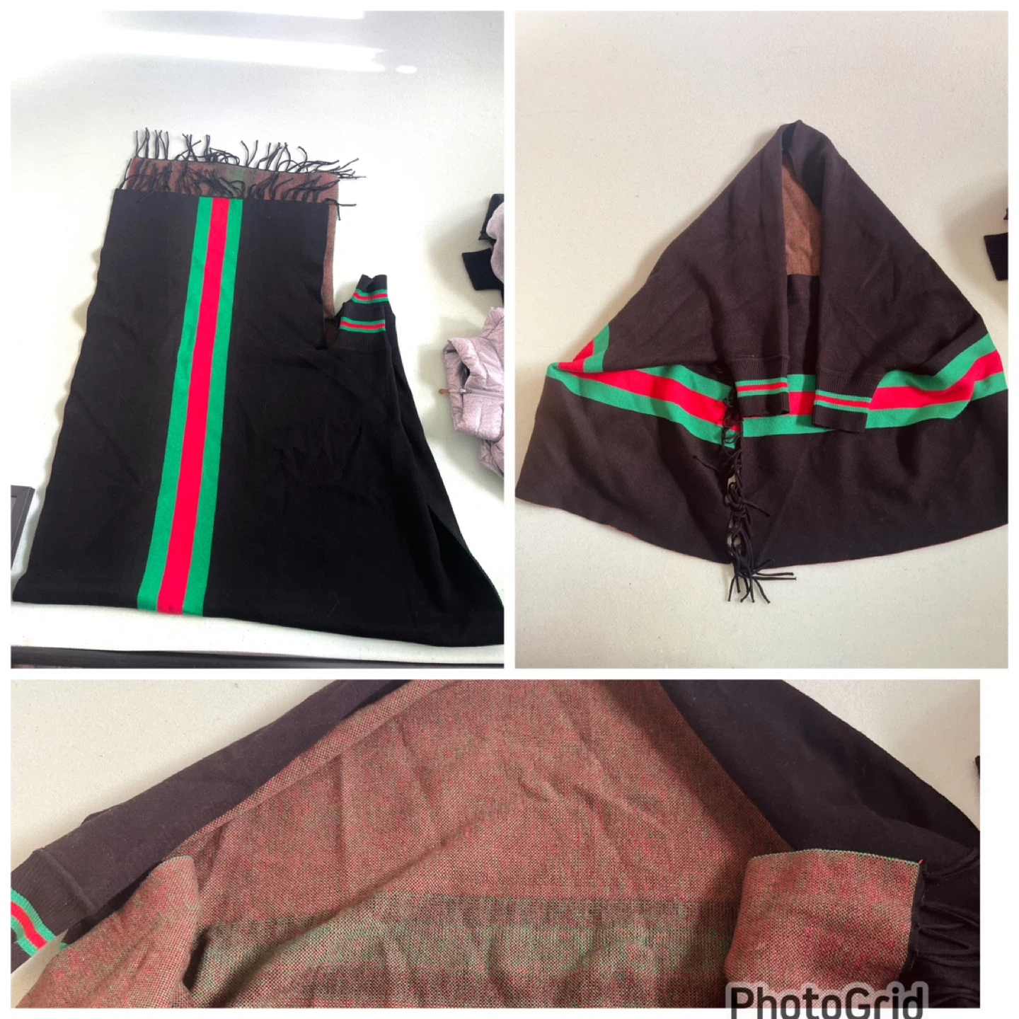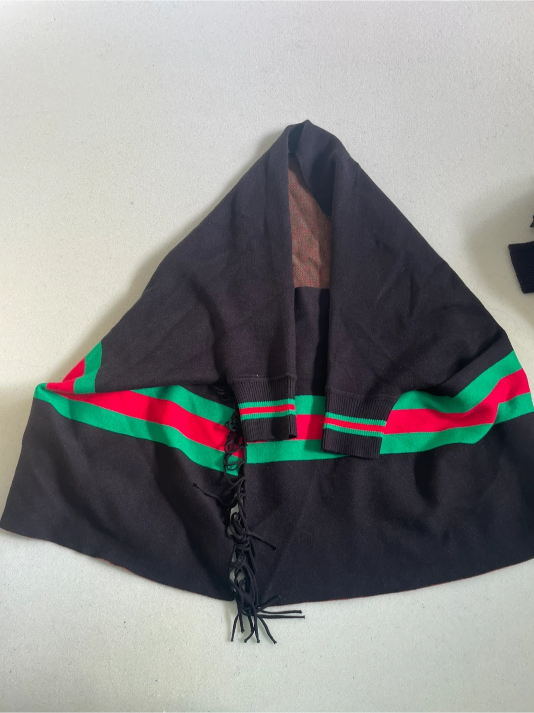 It's made with a comfortable knit material and has fringed edges. It's a stylish layering piece for cooler weather.