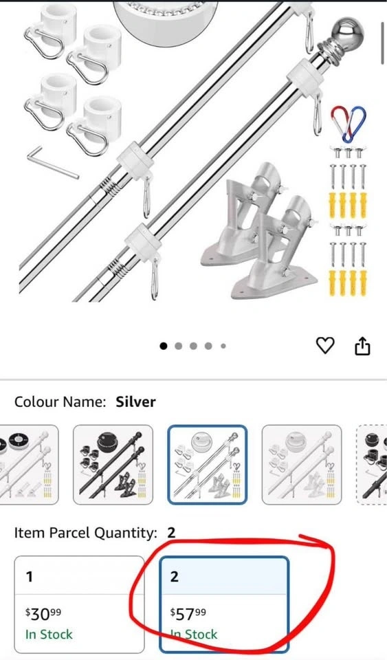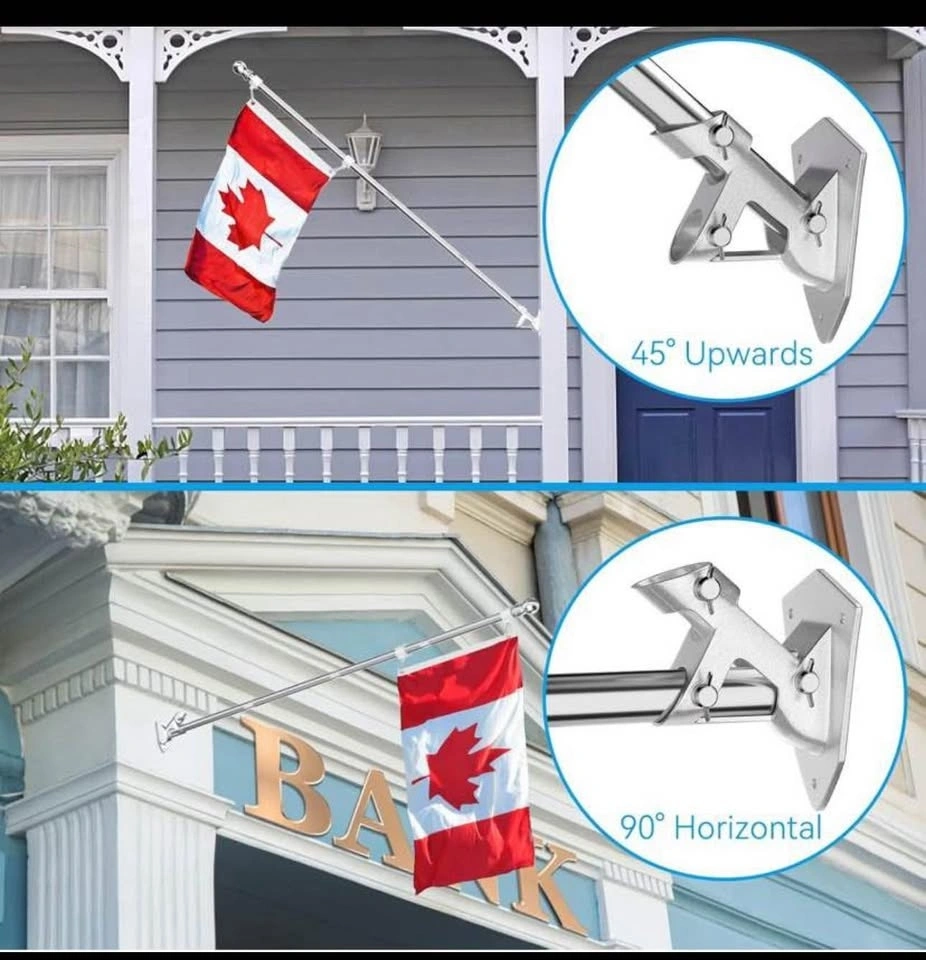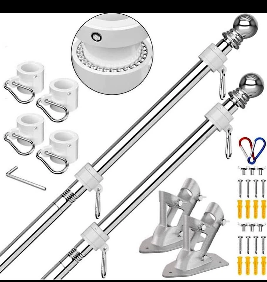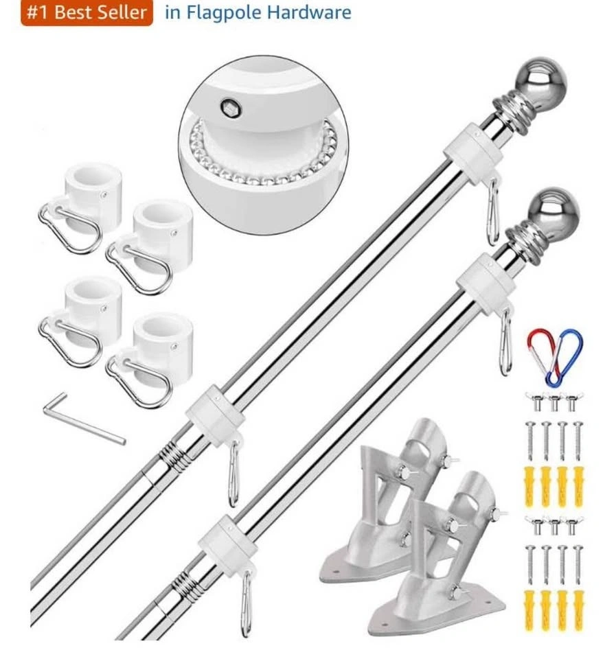 2 Pack Silver Stainless Steel 6ft Flag Poles with Bracket
