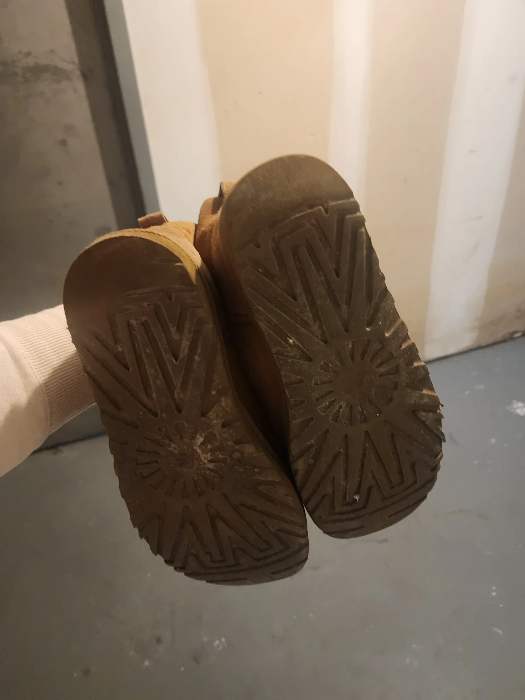 Brown UGG Australia boots crafted from suede with sheepskin lining. These short boots offer warmth and comfort.