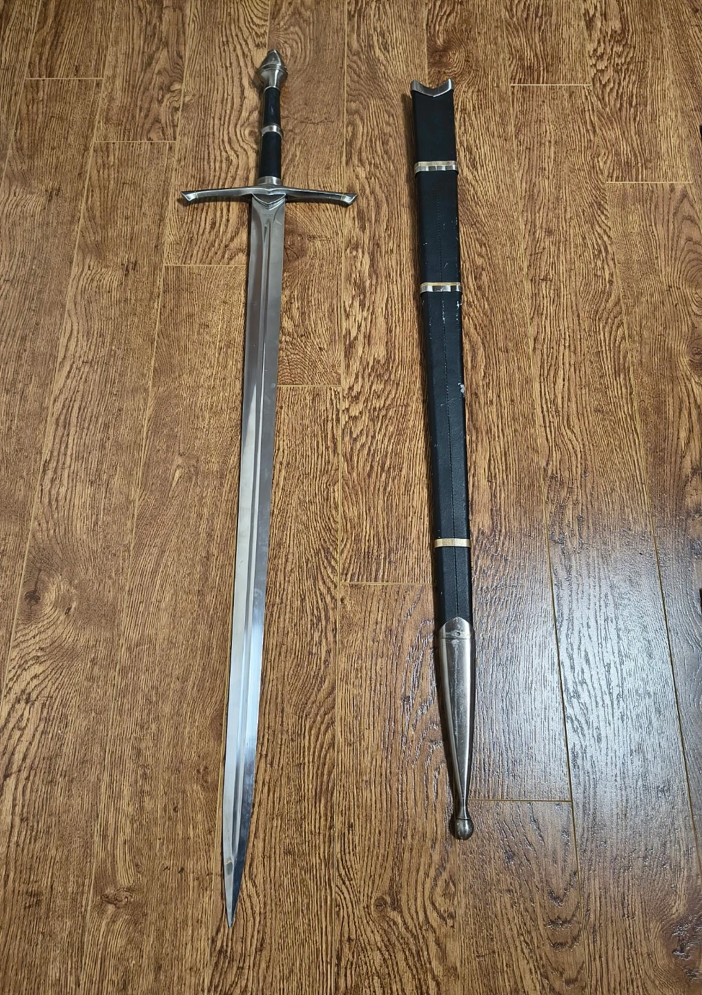 Buy & SellMedieval Style Sword with ScabbardMedieval Style Sword with Scabbard$80This sword features a metal blade and a decorative hilt. It includes a black scabbard with silver-tone accents. Suitable for display or costume use.ConditionGoodWHERE TO MEETCheck LocationView MapSELLERverifiedClaudiaFinch1064 reviews1 chats·1 favorites·20 viewsSEND CHAT TO SELLERHi Claudia! I’m interested in your listing.Hi Claudia! I’m interested in your listing.Get the Karrot app to chatSign In to chat