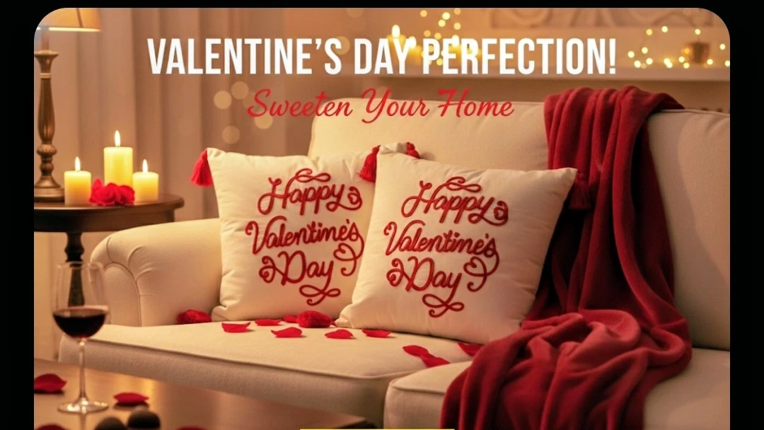 These festive pillows feature "Happy Valentine's Day" embroidered in bold red script. They're made from a textured linen-look fabric with red tassels on each corner. They'd be a sweet addition to your home decor for the season!