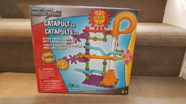 I have 2 Techno Gears Marble Mania children's toys that provide hours of entertainment. They are Catapult 3 and Zany Trax 3. Children will create pathways for marbles to tumble through a variety of mazes. Similar toys at Toys R Us are $39.99 plus tax. You can have 2 for the price of one.