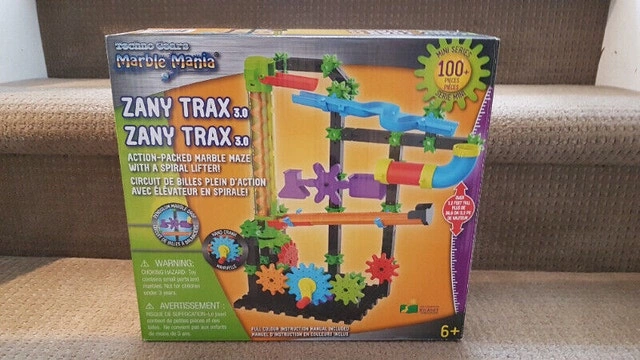 I have 2 Techno Gears Marble Mania children's toys that provide hours of entertainment. They are Catapult 3 and Zany Trax 3. Children will create pathways for marbles to tumble through a variety of mazes. Similar toys at Toys R Us are $39.99 plus tax. You can have 2 for the price of one.