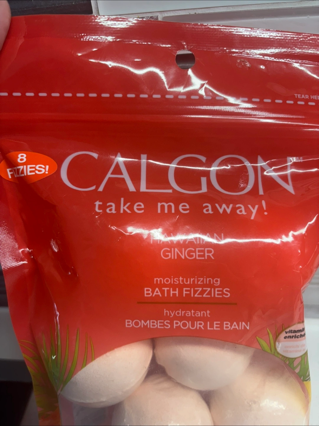 Calgon Hawaiian Ginger moisturizing bath fizzes. Contains 8 fizzy balls. Each bath fizzy is 2.1 oz (60g).