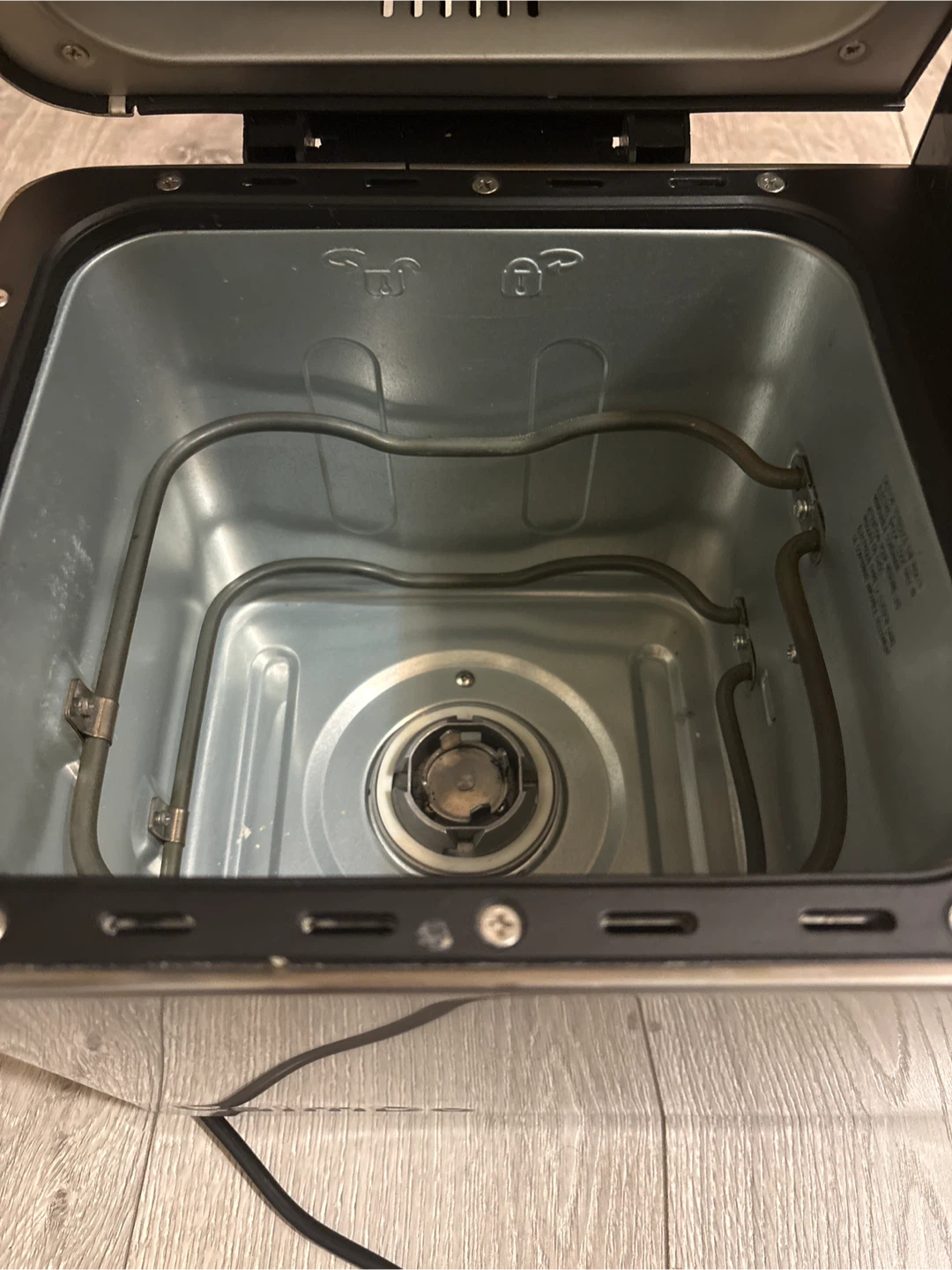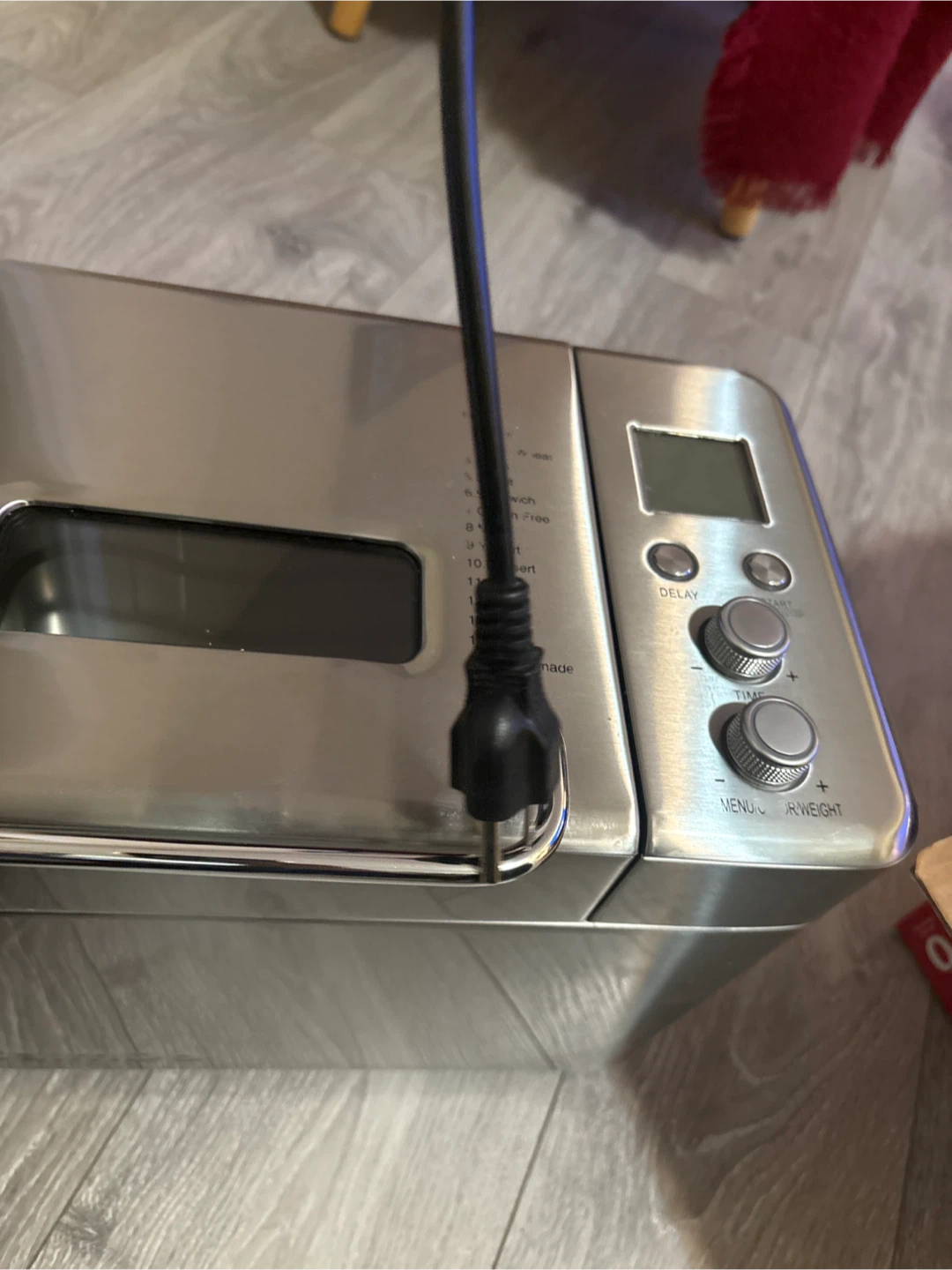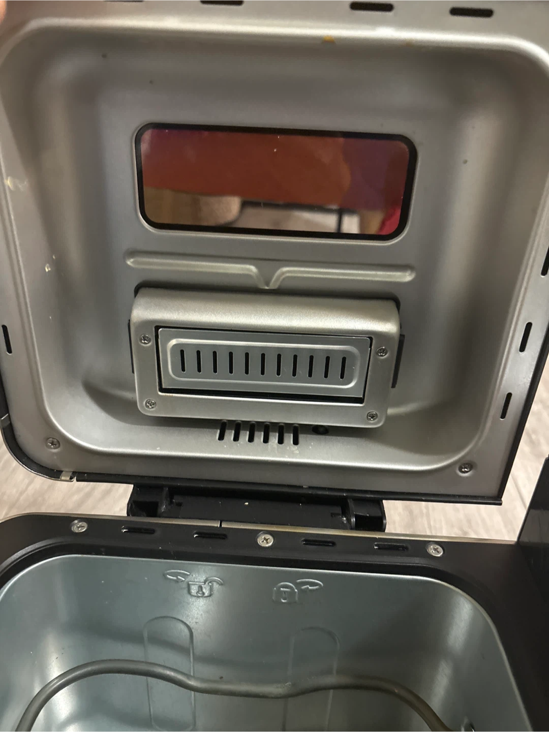 Make fresh bread at home with this CalmDo bread maker. It has multiple settings including sweet, sandwich, gluten-free, yogurt, dessert, dough, jam, cake, and bake options. Stainless steel exterior and interior.