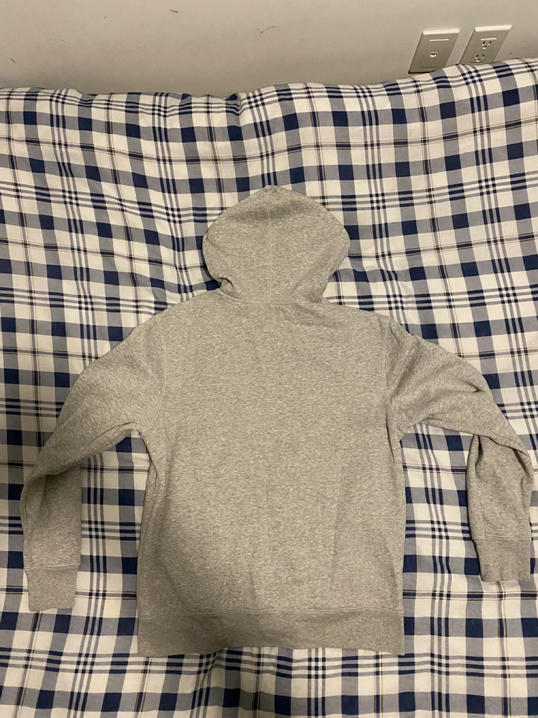 This is a grey zip-up hoodie from GAP. It features a classic GAP logo across the chest. Made with a comfortable blend, it's perfect for casual wear.