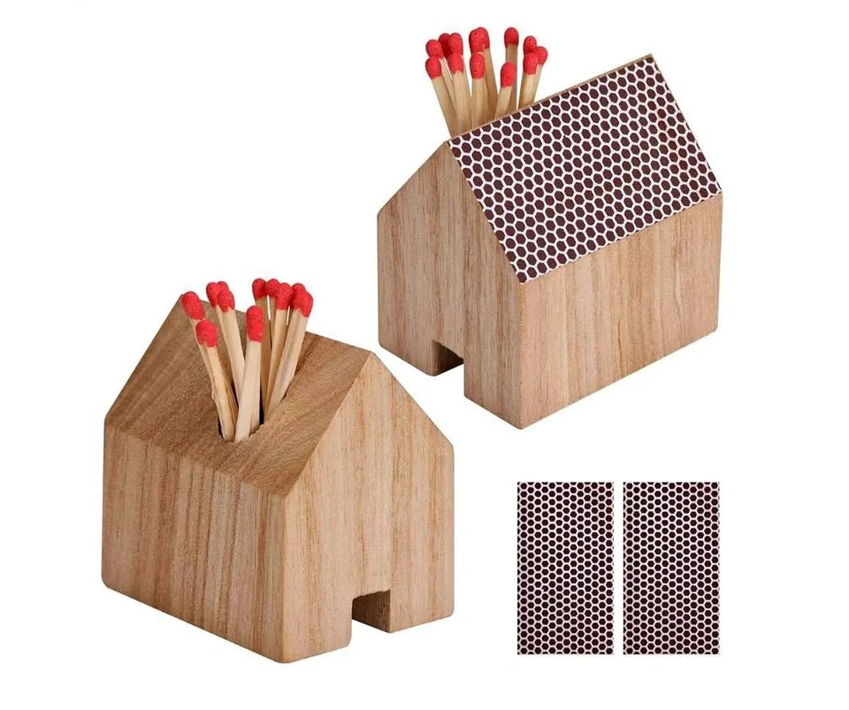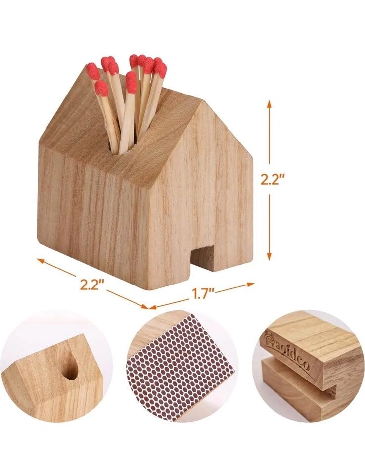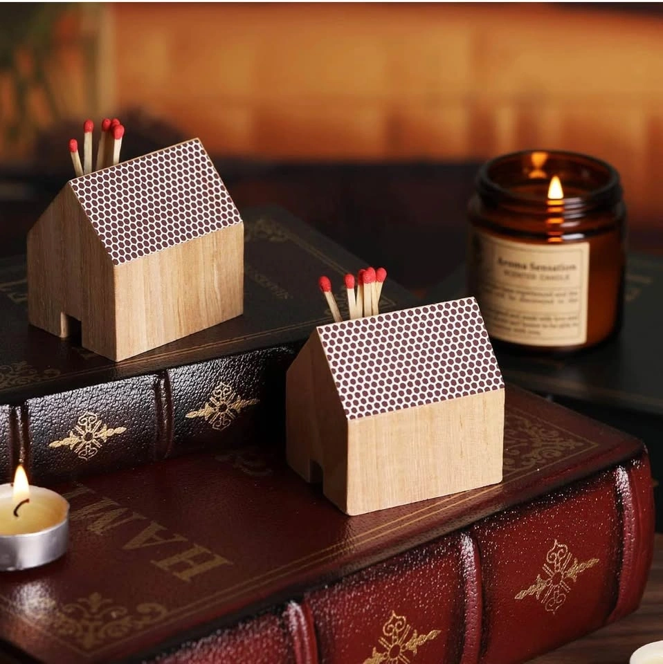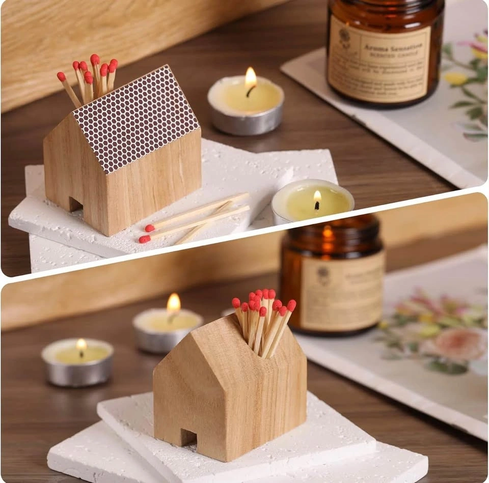 Holds standard matchboxes perfectly (matches not included). Built-in striker strip on the side for easy lighting. Cute house shape – great for kitchen, dining table, or fireplace area. Compact and sturdy – adds a stylish touch to any home.