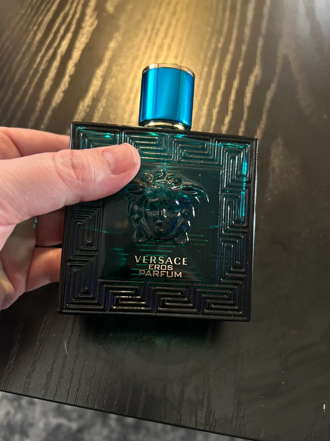Versace Eros Parfum for men in a 100ml bottle. It's a fresh, woody, and amber scent. Vol 70%. Made in Italy.