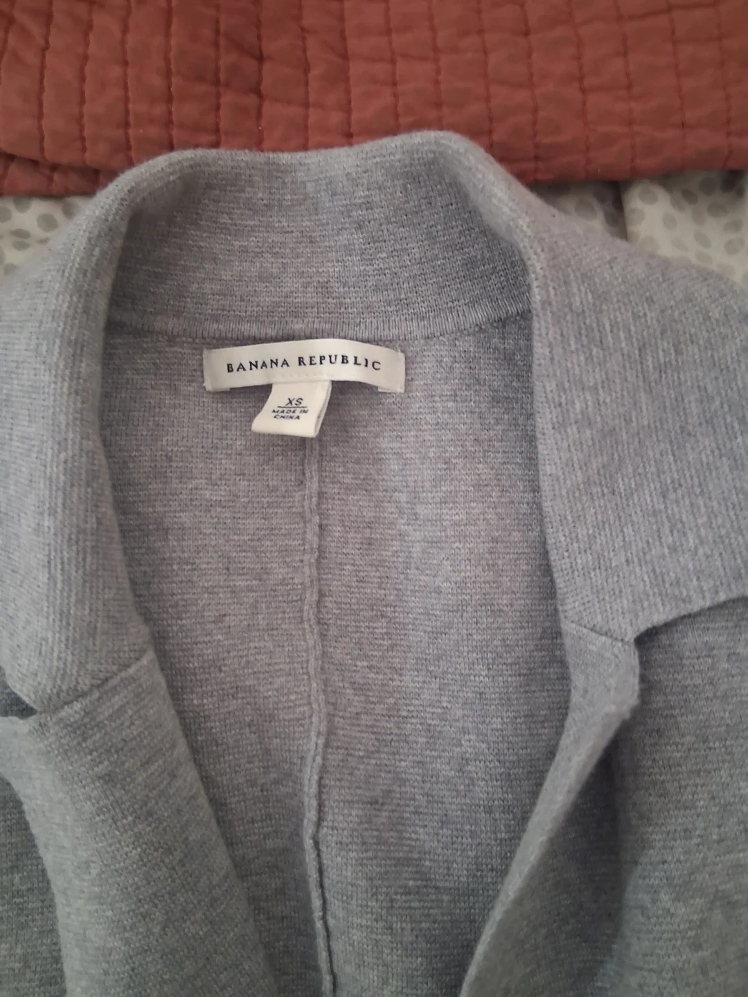 Buy & SellBanana Republic Grey Knit BlazerBanana Republic Grey Knit Blazer$20This is a Banana Republic knit blazer in grey. It's a size XS. The material is a soft knit fabric.ConditionLike newSizeXSWHERE TO MEETCheck LocationView MapSELLERverifiedRafaellaRego Park882 reviews0 chats·0 favorites·33 viewsSEND CHAT TO SELLERHi Rafaella! I’m interested in your listing.Hi Rafaella! I’m interested in your listing.Get the Karrot app to chatSign In to chat